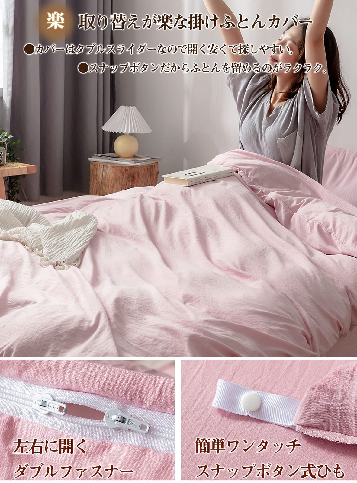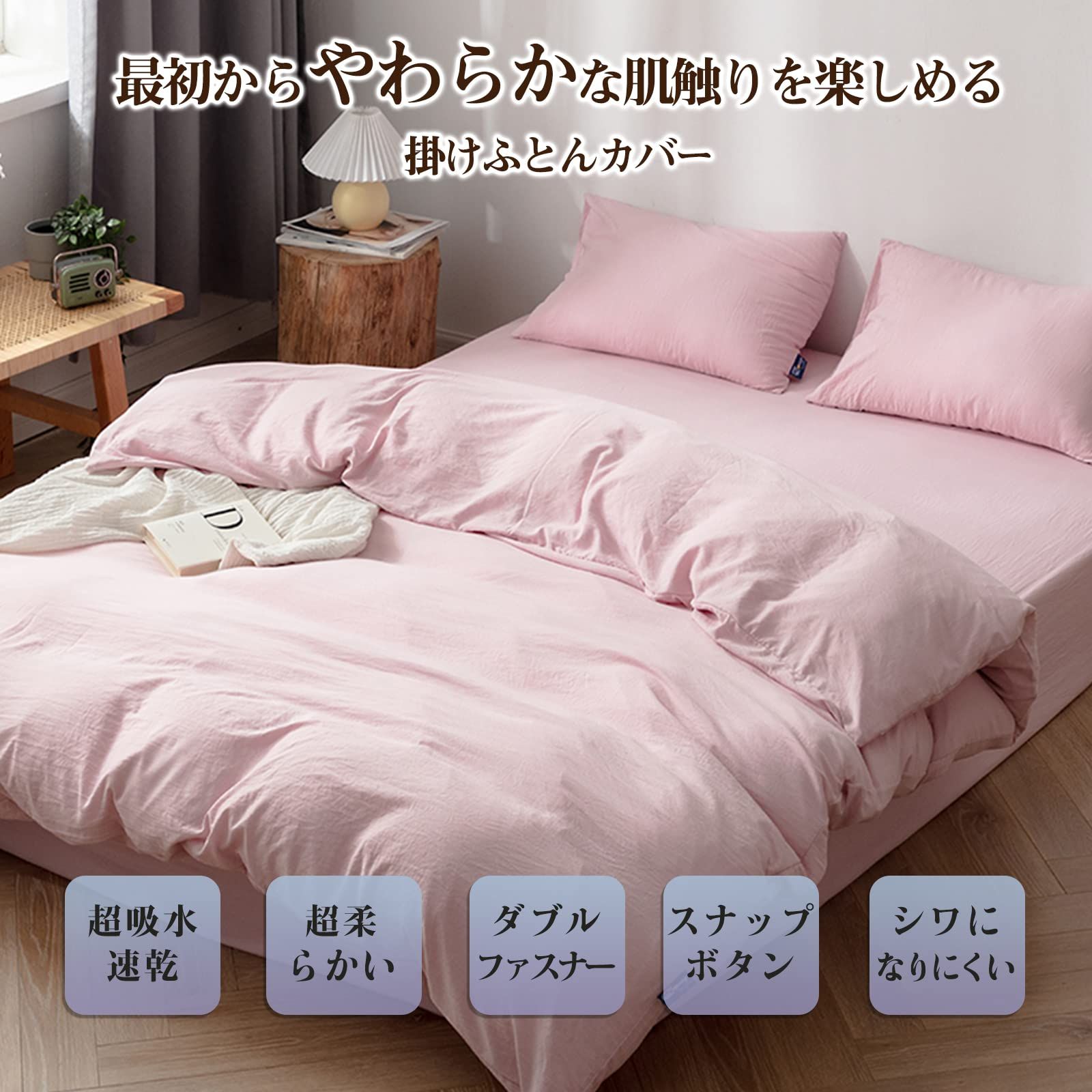 掛け布団カバー シングル 布団カバー 【洗いざらし & 超柔らかタイプ】 ダブルファスナー 抗菌防臭 吸水速乾 丸洗いOK オールシーズン 掛けカバー かけ布団カバー 掛ふとんカバー 肌に優しい (シングル ピンク)