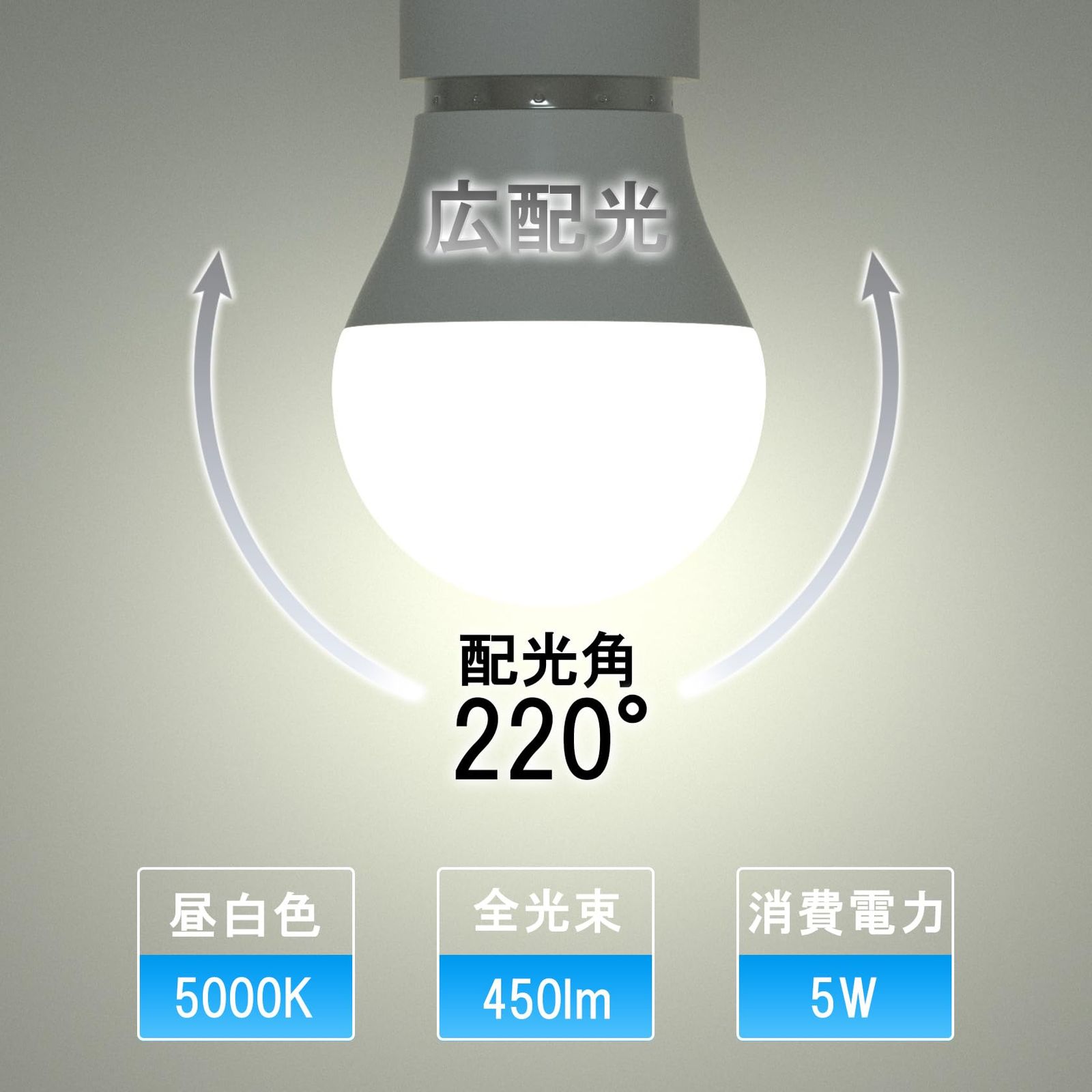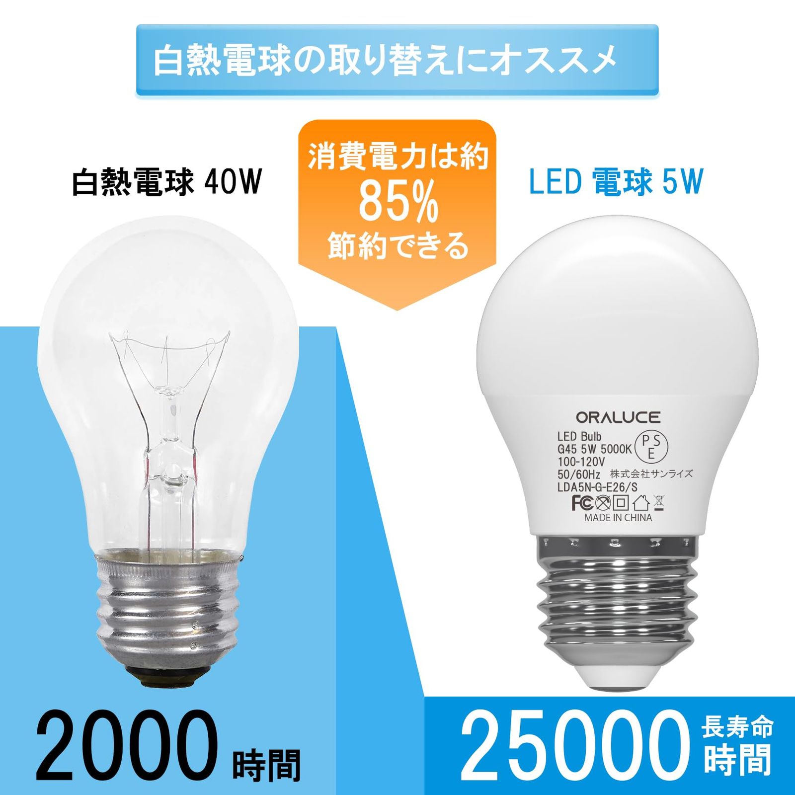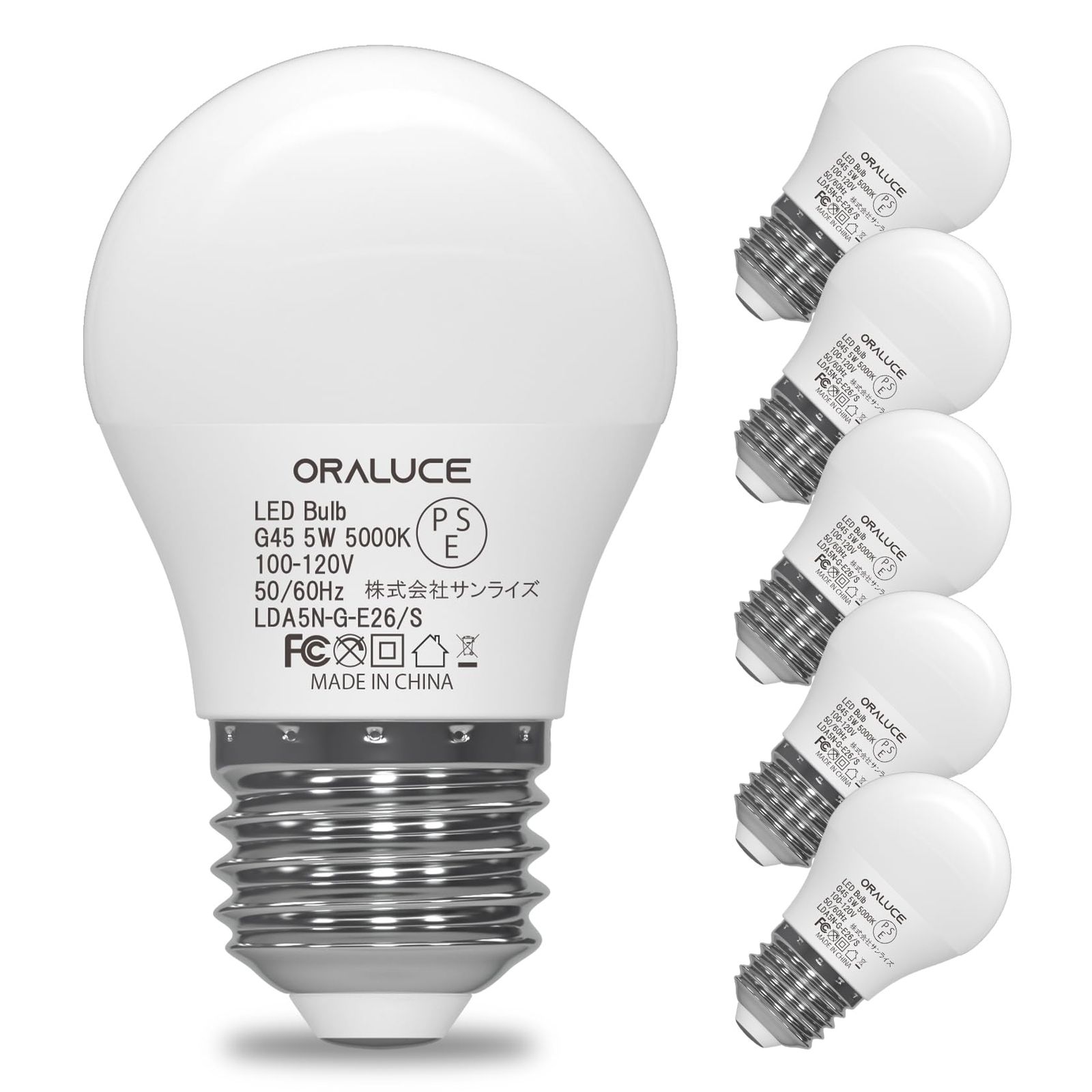 ORALUCE LED電球 E26口金 40W相当 昼白色 5000k 5W 450lm 220度広配光 高演色 小型電球 密閉器具対応 調光不可 PSE認証 6個入