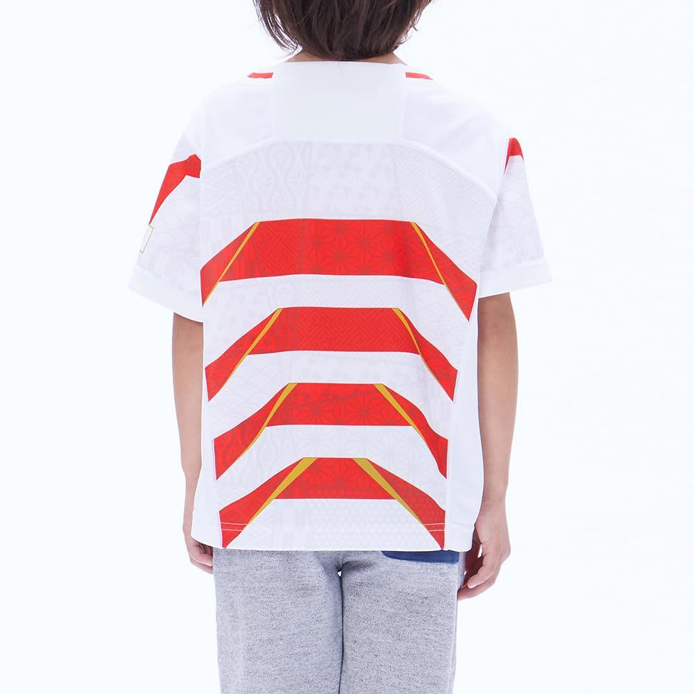 ラグビー日本代表2023新レプリカジャージーのキッズモデルです。伝統の赤と白を基調とし、和の文様を取り入れたファーストジャージー。和の文様の中にフランスの国花であるユリの紋章があるのはフランス大会の成功を祈願するという開催国に対するリスペクトを意味します。そしてこの新ジャージーのコンセプトは2019年のレガシーを継承し「KABUTO兜」日本人の持つスピリット“武士道の精神で世界と戦う「精神性、誇り」が宿っています。世界に挑む選手たちを鼓舞し、代表チームと一緒に戦う日本中の気持ちを一つに繋げたジャージーになります。