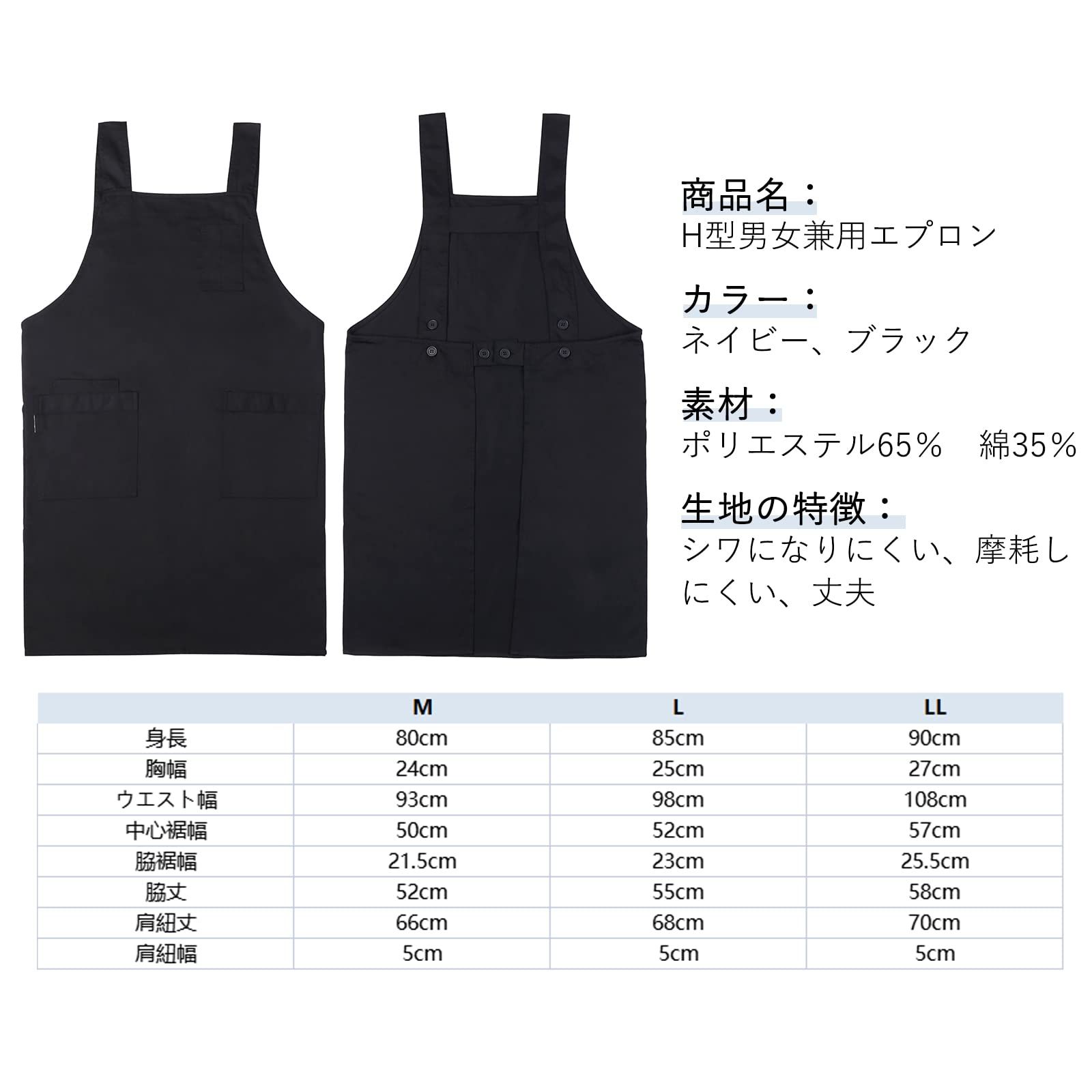 [Poweforest] エプロン H型【M~LL】 調節可能 動きやすい おしゃれ シンプル 無地 カフェ風 エプロン ポケット付き 汚れにくい シワ防止 業務用 仕事用 家庭用 男女兼用