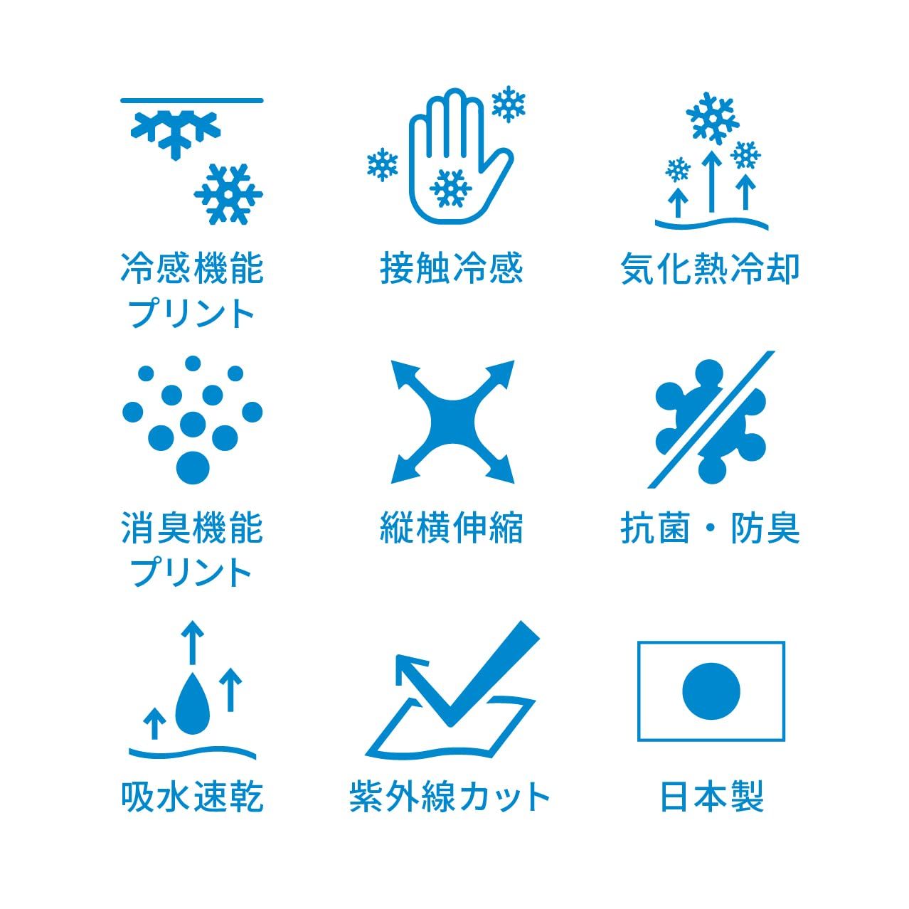 冷感機能プリント+接触冷感+気化熱冷却