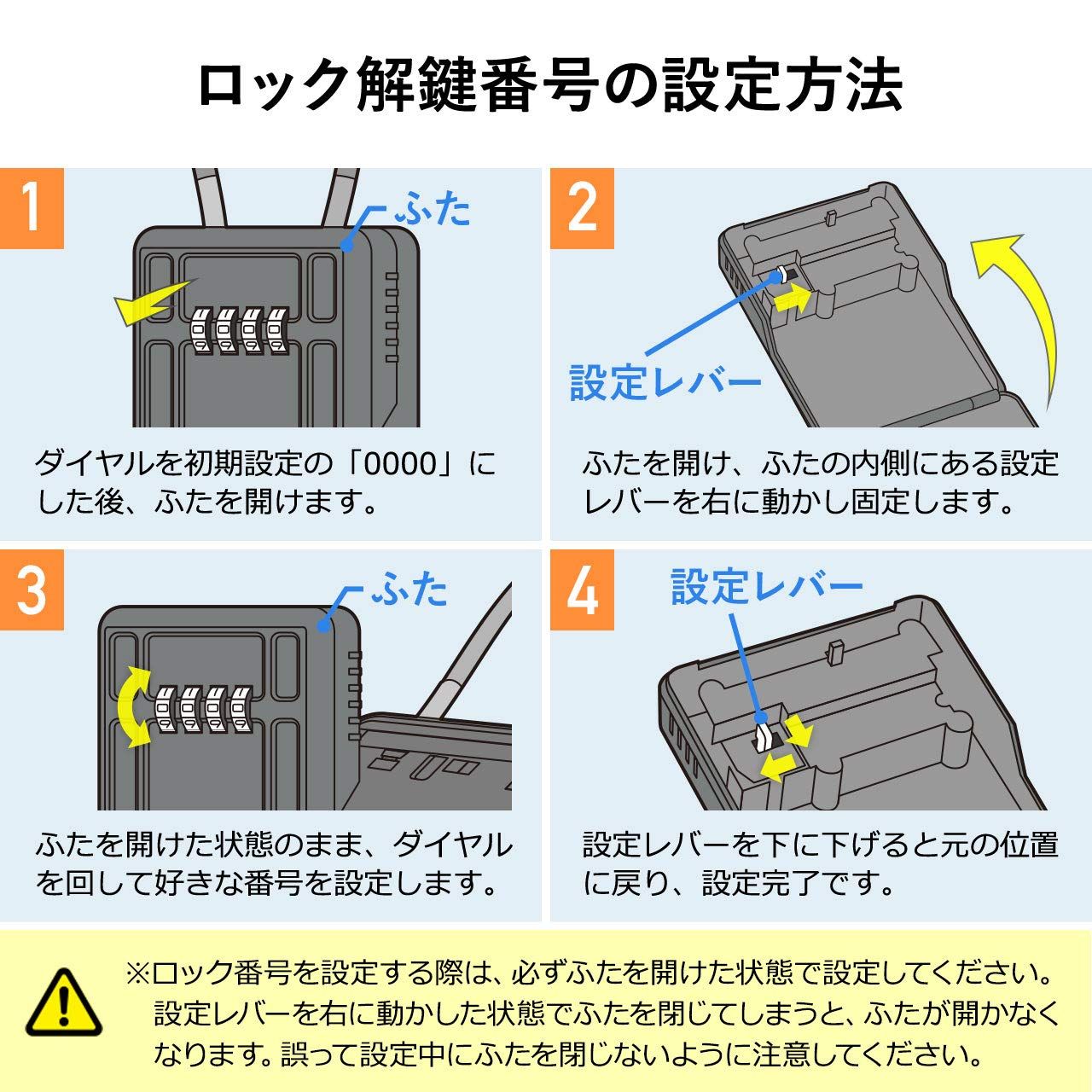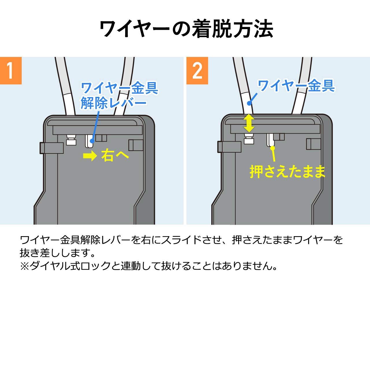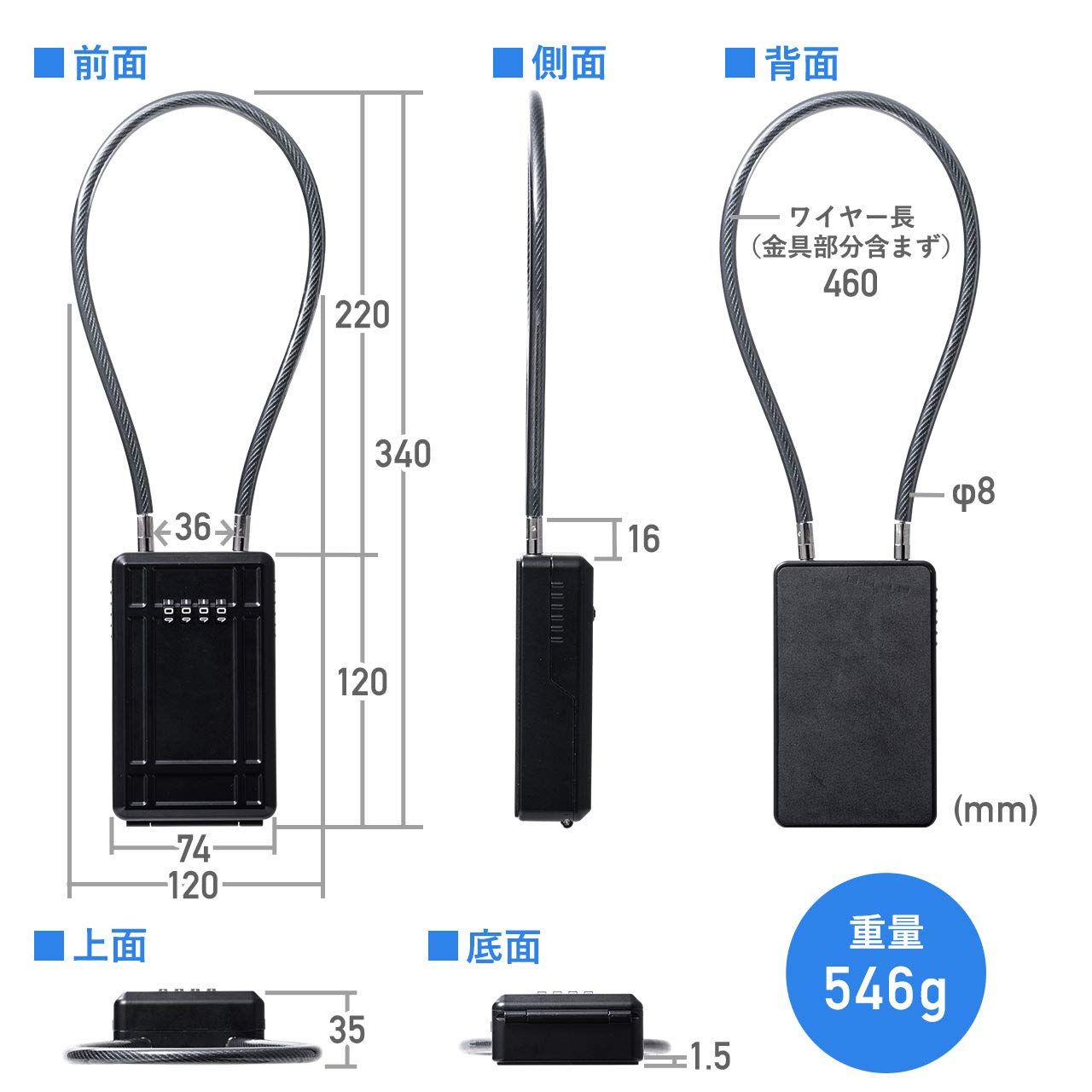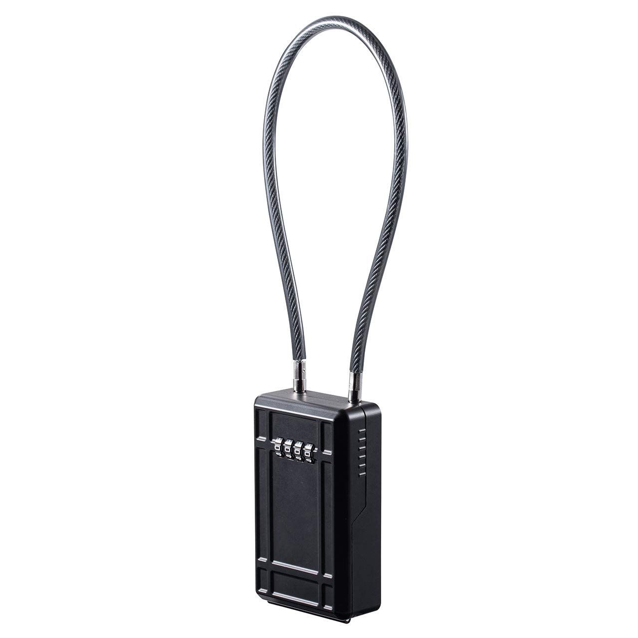 サンワダイレクト 鍵収納 キーボックス ダイヤル式 4桁 大型 ワイヤー長46cm 盗難防止 200-SL066BK