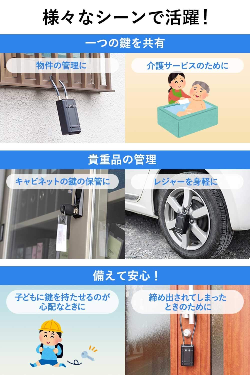 留守中も安心して鍵を共有できるので、ストレージや玄関、事務所や賃貸物件などの鍵を管理するのに最適です。