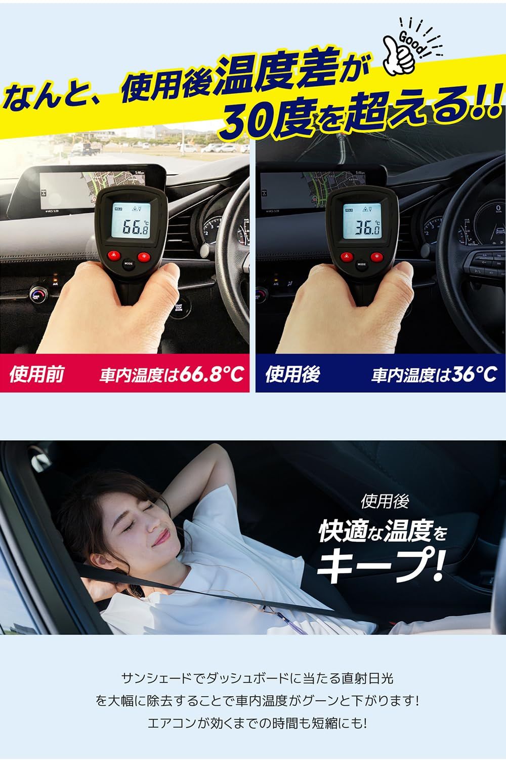 ??【6層高分子遮光断熱材・車内劣化防止】紫外線を防ぎ、夏季の車内温度を下げることを目的としている。フロントバイザーが紫外線を遮断。99.9%以上の紫外線を効果的に遮断するカーシェード。車外の温度が上昇しても、駐車中の車内を涼しく保ち、暑さを防ぎます。蒸し暑さを気にする必要がなくなりました。内部の劣化、破損、および経年変化を防止します。駐車中の日光、ステアリングホイールの焦げ、ダッシュボードなどの樹脂部品の日焼けによる損傷から愛車を保護します。駐車するたびに涼しくなります。