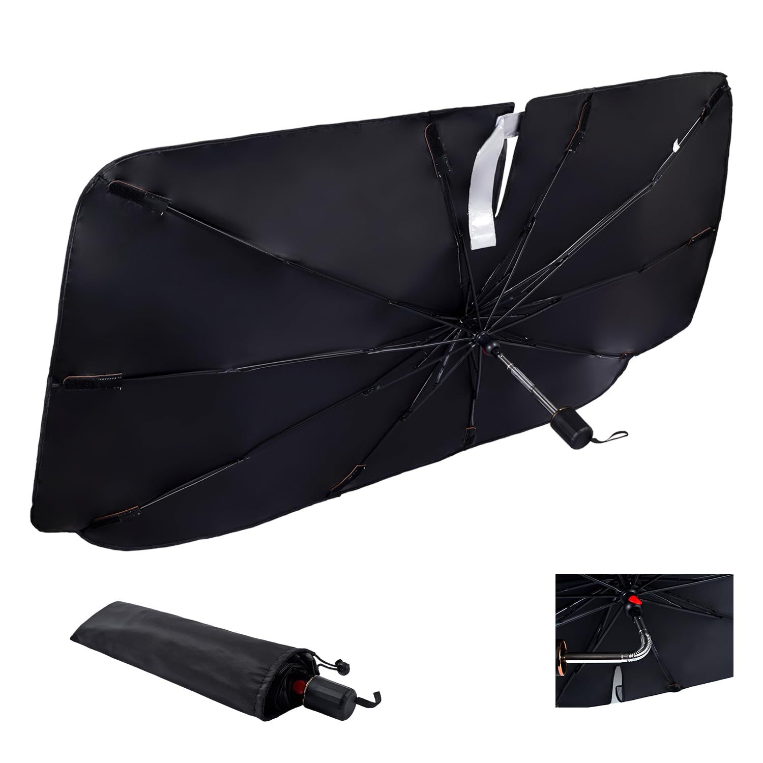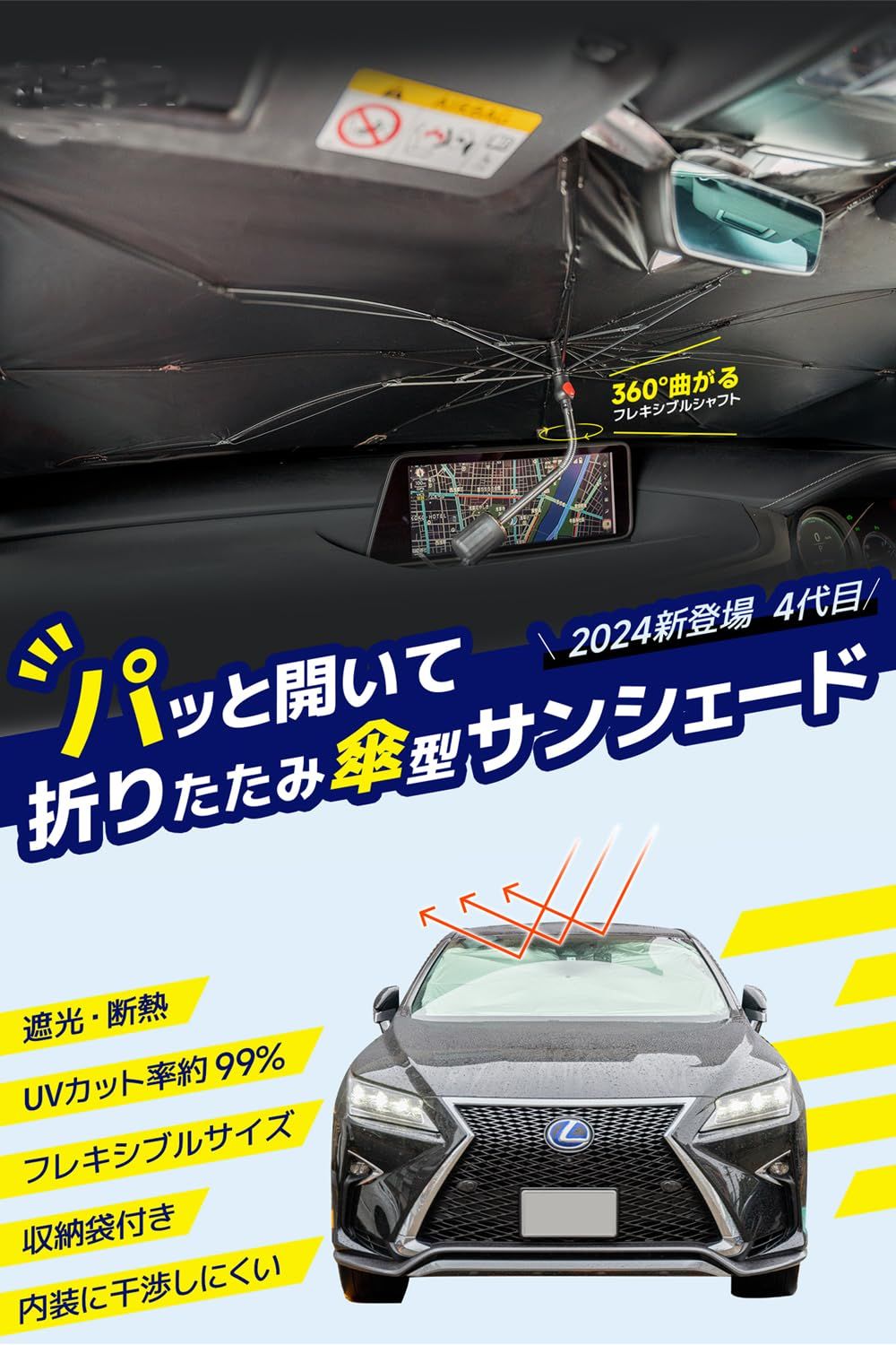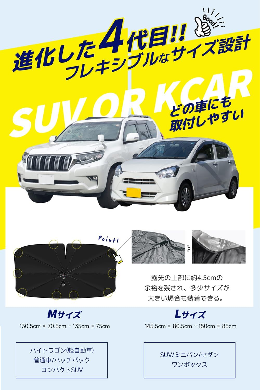 konciwa【2024新版&曲がる中棒】 サンシェード 車 フロント 傘型 車用サンシェード 折り畳み式 強力な10本骨逆折り式 車用パラソル 自動車用サンシェード バックミラー開き口 遮光 遮熱 取り付け簡単 収納便利 レザーバック付き フロントガラス 紫外線対策 遮光性よい 車中泊 仮眠 暑さ対策… (M-S(135*75cm幅の調整可能))