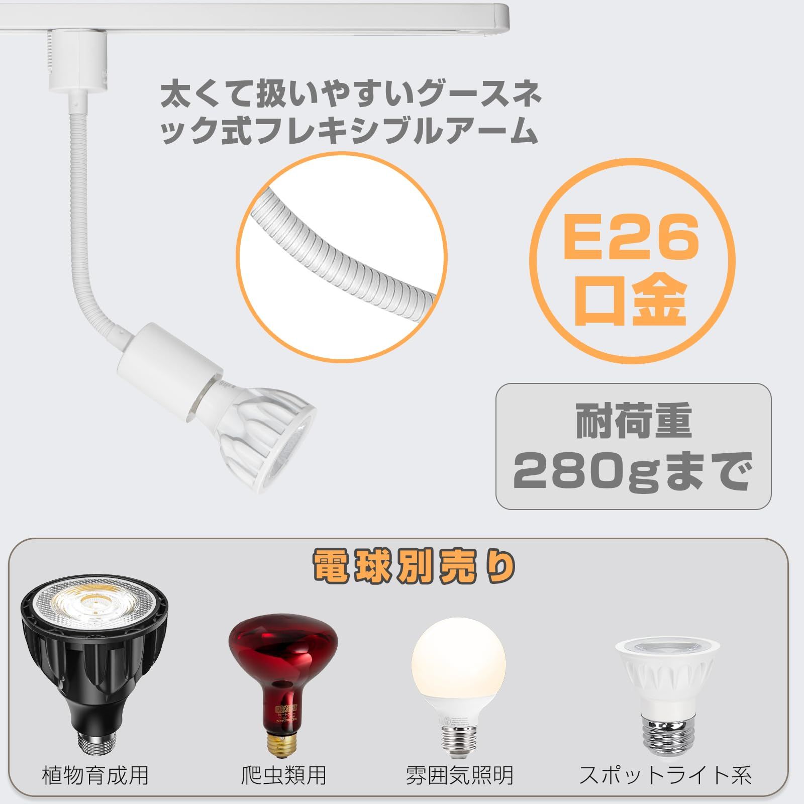 ダクトレールライト グースネック設計で角度調整自由自在 ライティングバー用スポットライト E26ソケット標準仕様/ホワイト 電球別売り 植物育成・リビング・寝室に最適