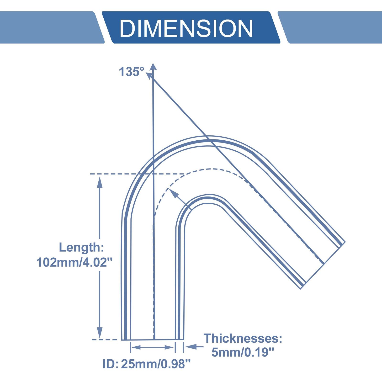 [サイズ] 内径: 25mm/0.98、角度: 135°、長さ: 102mm/4.02、厚さ: 5mm/0.19