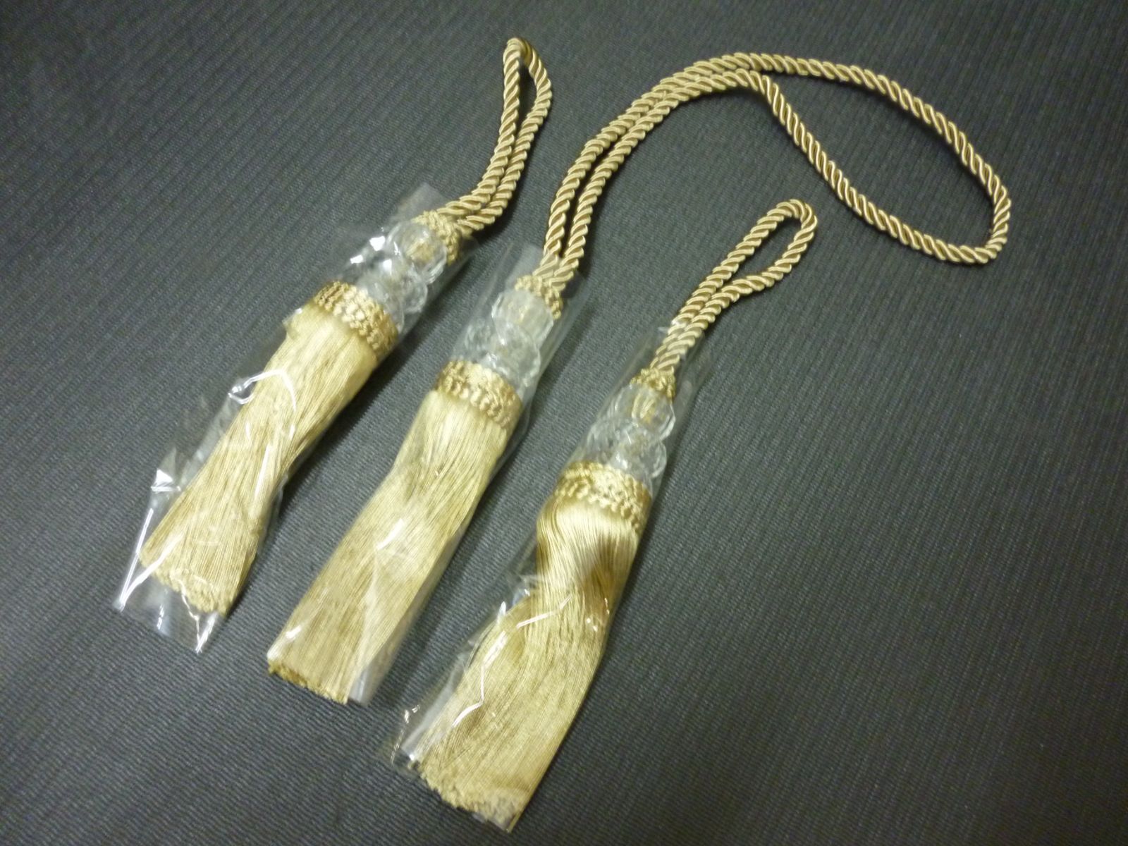 未使用品 三本セット 詳細不明 タッセル 金房 フサ 58cm×1 33cm×2 カーテン留め
