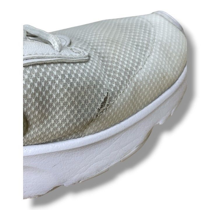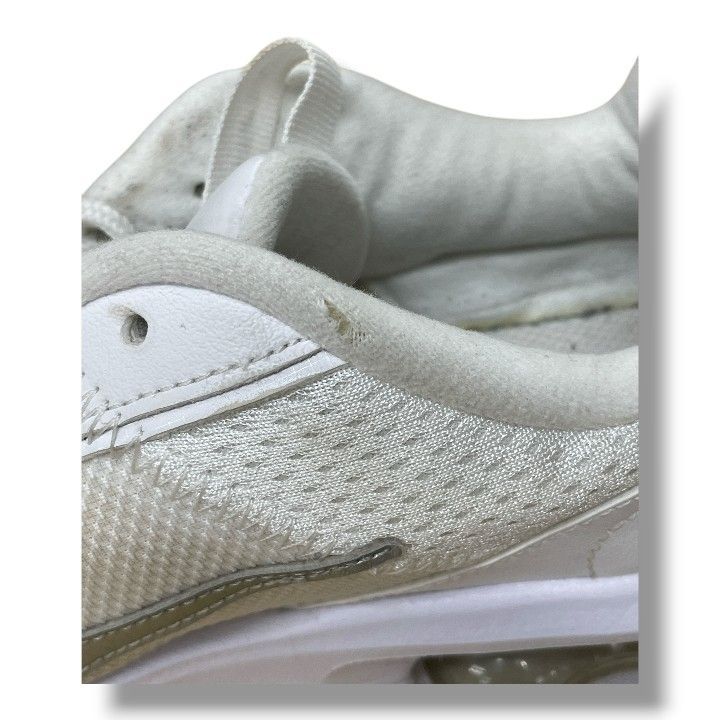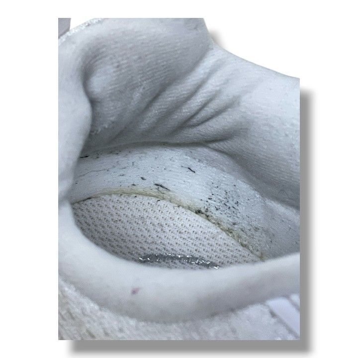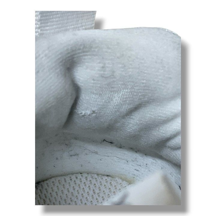 内側履き口に破れ(写真12枚目)が、内側の内部かかと付近に汚れ(写真13枚目)が、同じくかかと部分に若干の破れが(写真14枚目)あります。