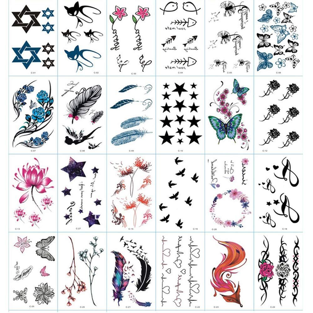 Yesallwas タトゥーシール 六芒星 薔薇 黒 青 蝶 花 30枚セット 入れ墨シール タトゥー リアル 防水 長持ち 入れ墨シール タトゥーステッカー ボディーシール メンズ レディース 刺青シール TATOO 5.7cm×9.7cm (C)