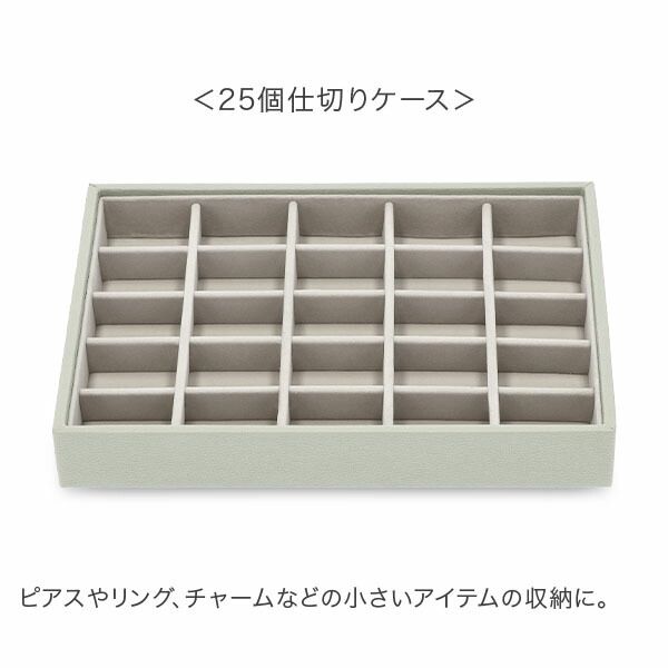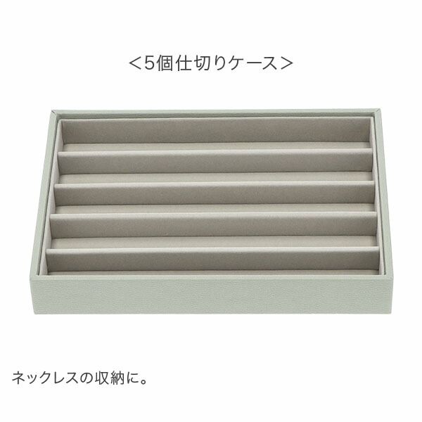 様々なサイズの収納スペースがあり、リング・イヤリング・ピアス・ブレスレット・ネックレスなど、各スペースに合わせて美しく整理して収納できる蓋付きボックス。こちらの2段目をご自由にお選びいただけます。