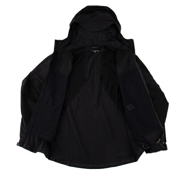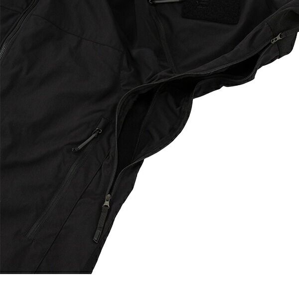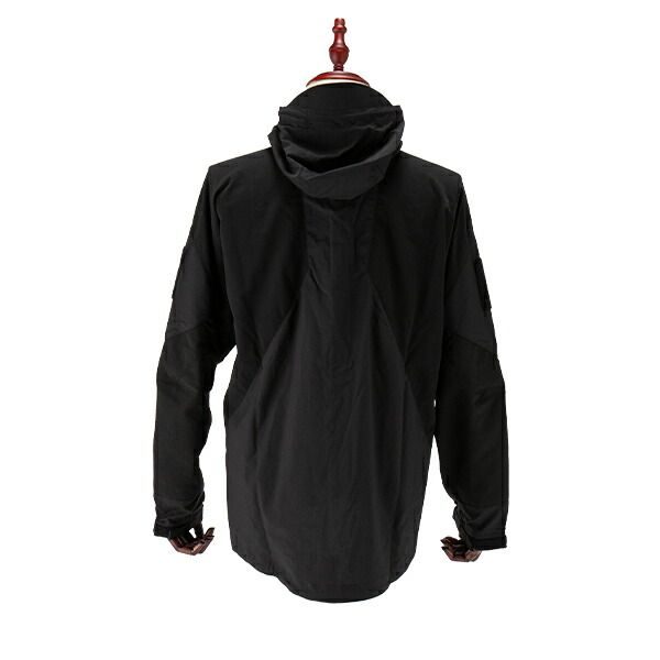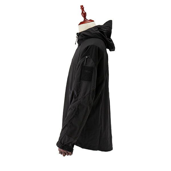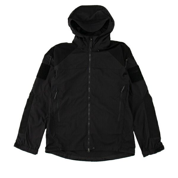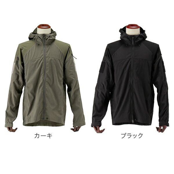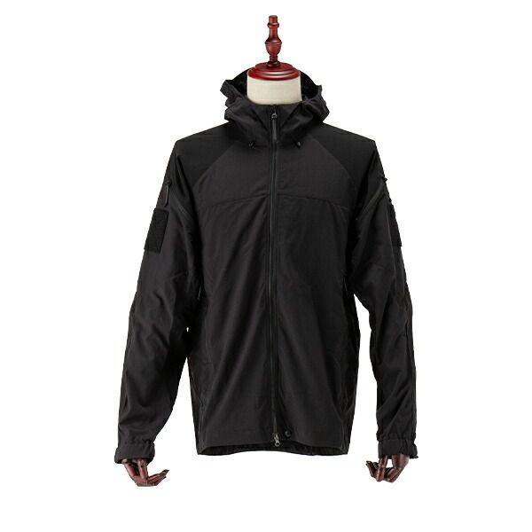 ナイロン主体の軽量素材にストレッチ性を加え、風を防ぎながら快適な動きを実現します。肩や背面のエラスティックパネルが可動性を高め、脇のベンチレーションで温度調整も自在。ベルクロ付きアームポケットや調整可能な裾・袖口など、タクティカルなディテールを凝縮。
