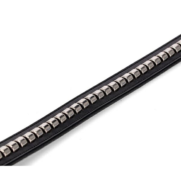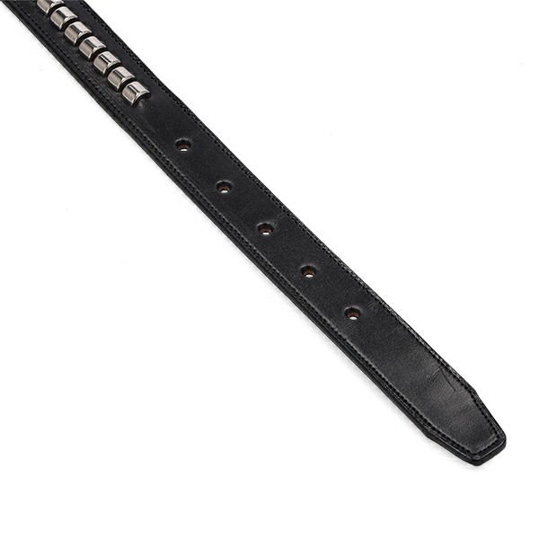 1インチ幅のブライドルレザーにメタルクリンチャー(鋲装飾)を施したスタイリッシュなベルトです。