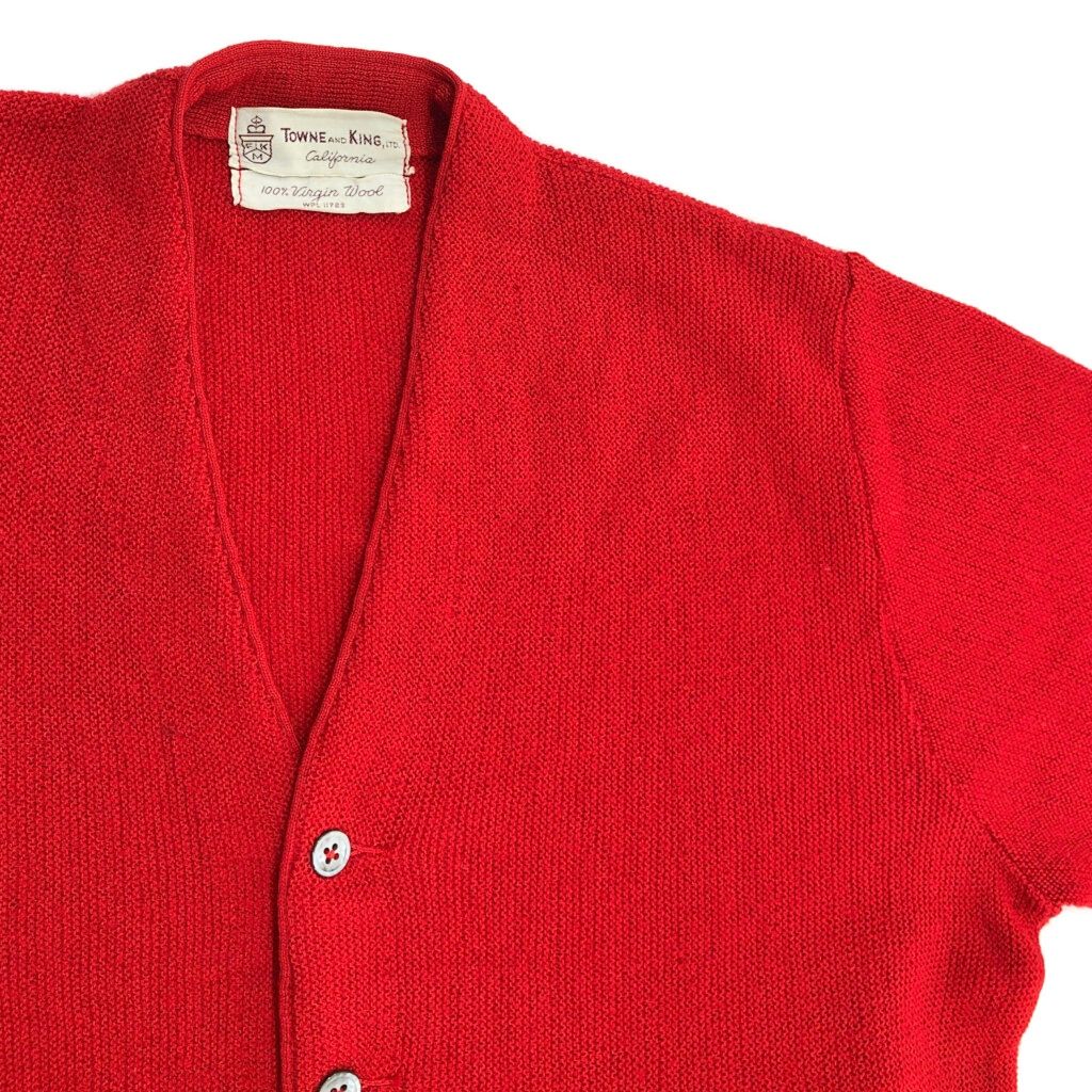 60年代 TOWNE AND KING ウールニット カーディガン ヴィンテージ レッド(メンズ M相当)中古 古着 V4107