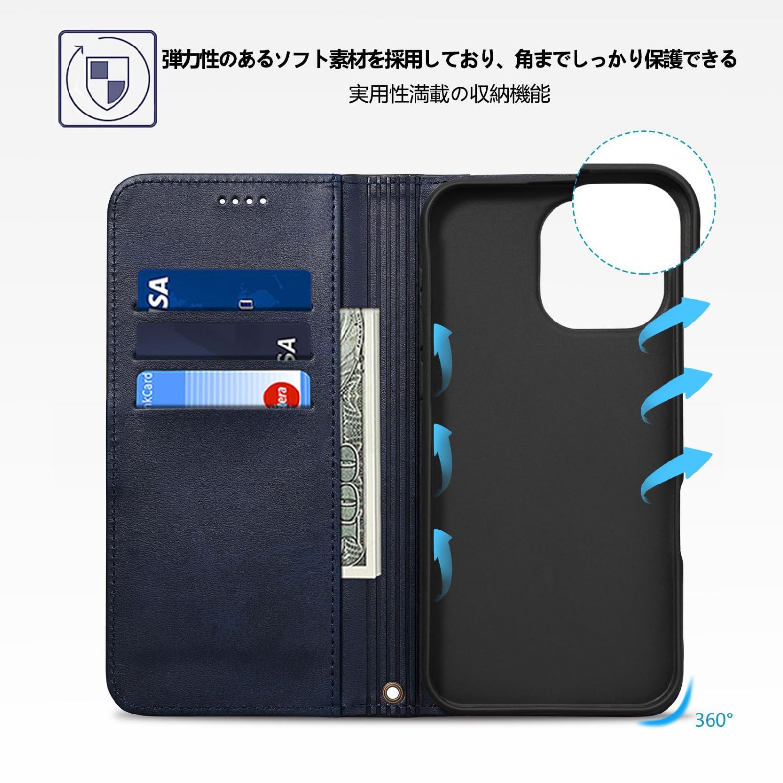iPhone16 Pro Max 用 手帳型ケースの保護力:外部のカバーは上質な合皮レザー素材を採用しており、放熱性や耐衝撃が良く、傷や埃を防ぐことができるiPhone16 Pro Max 用 カバーです。インナーケースは弾力性のあるソフト素材を採用しており、角までしっかり保護できるiPhone16 Pro Max 用 ケースです。