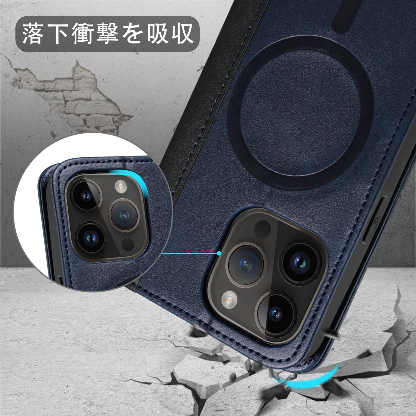 Rssviss iPhone 16 Pro Max 用 ケース 手帳型 MagSafe対応 iPhone16 Pro Max 用 手帳型ケース アイフォン16 プロマックス 用 ケース カード収納 スタンド機能 全面保護 衝撃吸収 スマホケース MagSafe 対応 内蔵マグネット 財布型 ケース iPhone 16 Pro Max MagSafe対応 手帳型ケース 6.9inch ネイビー