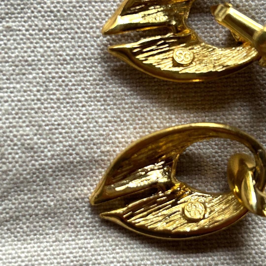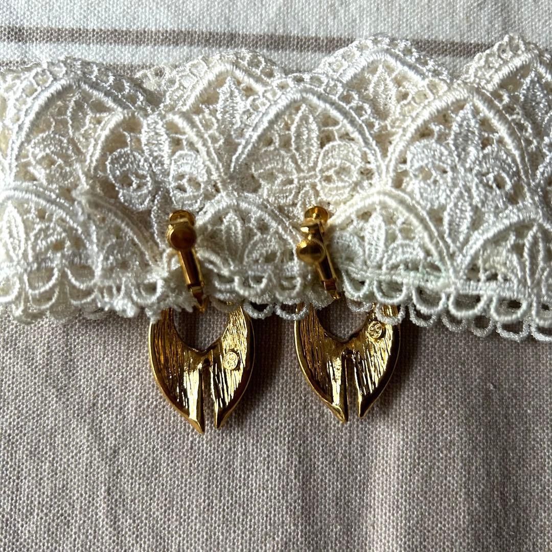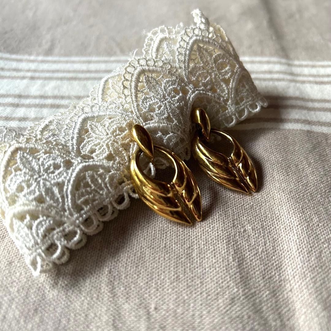 ゴールドの鳥の翼を思わせるデザインのビンテージイヤリングです。ゆらゆらと揺れて着けるだけで華やかな雰囲気のアイテム