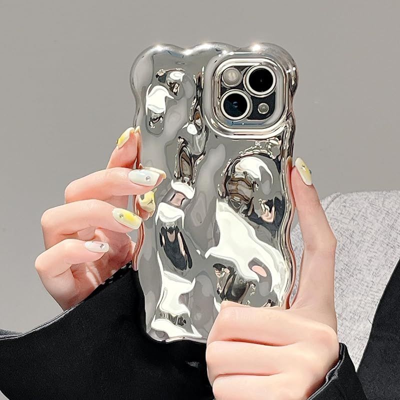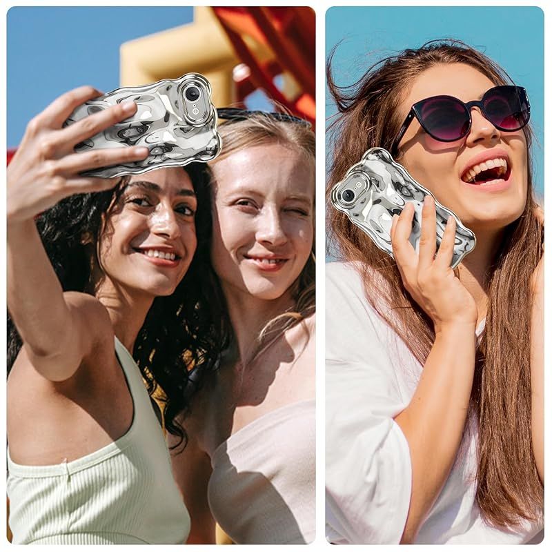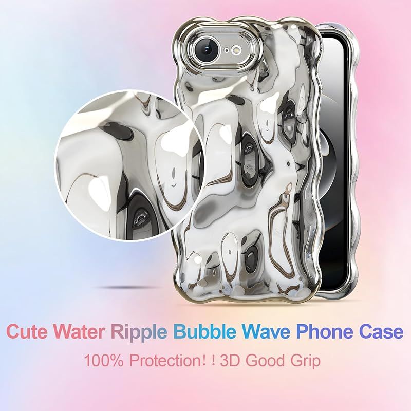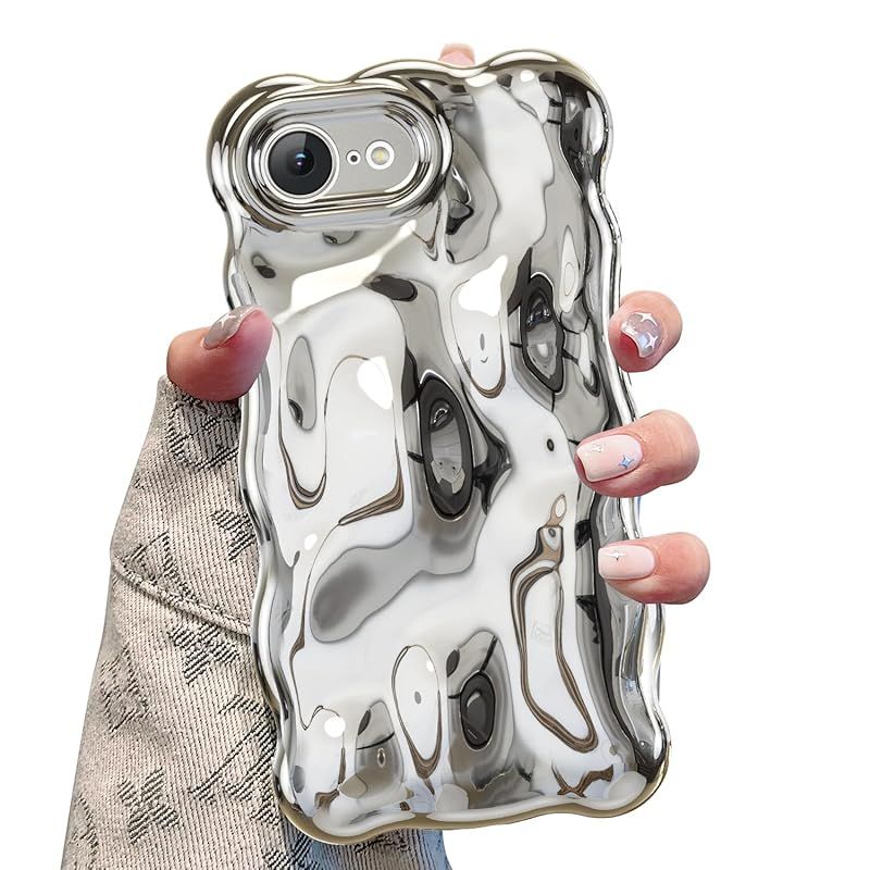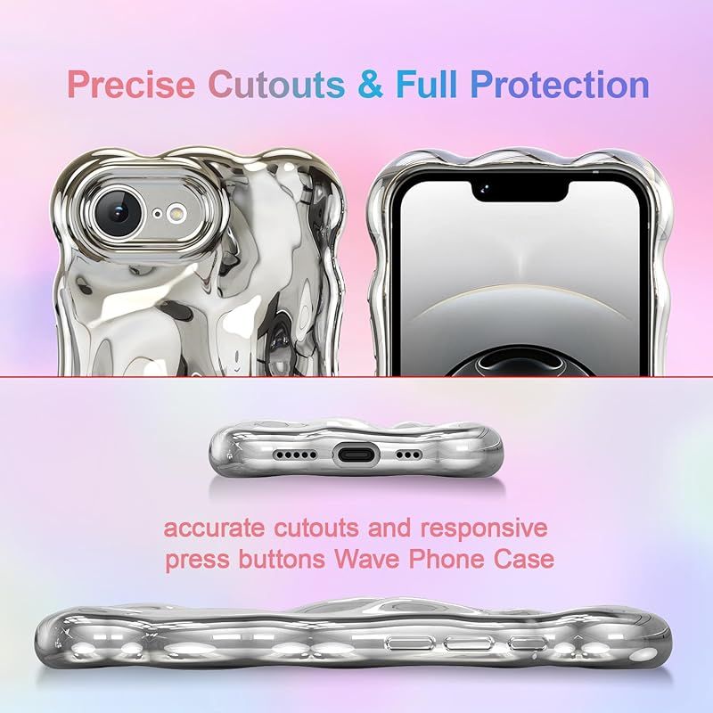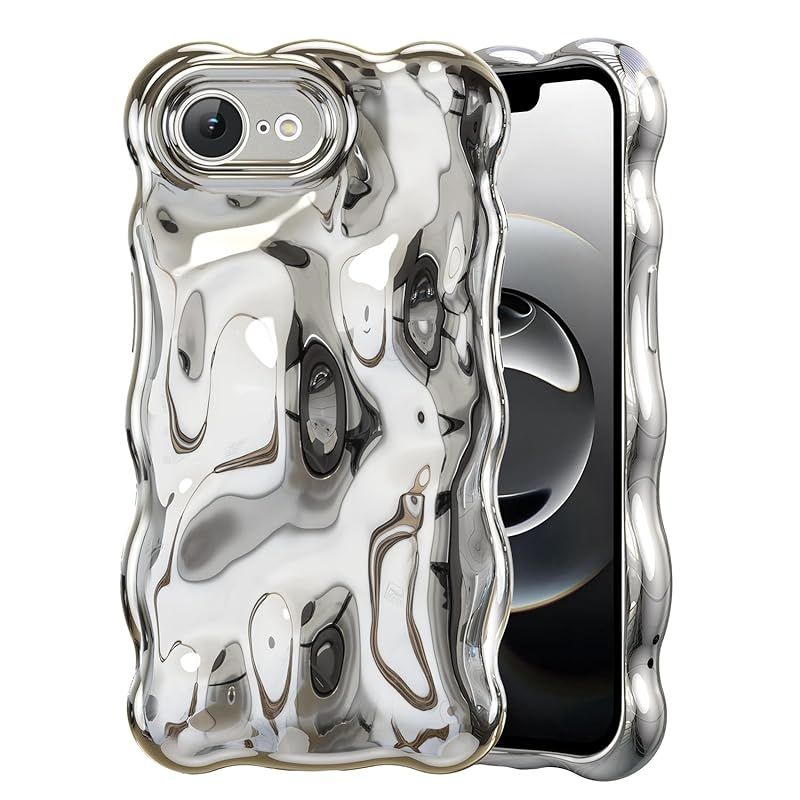 商品名:【新品】 UEEBAI 対応 iPhone 16e 用の ケース ウェーブデザイン スマホケース 可愛い 人気 おしゃれ ケース 薄型 軽量 グリッター 光沢カバー 耐衝撃 波型 バンパー スマホケース - シルバー