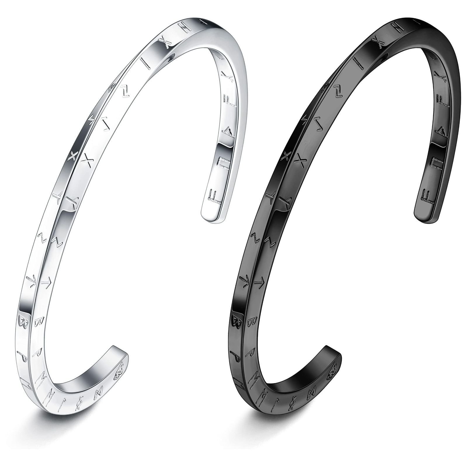 JeryWe ブレスレット メンズ 2個セット バイキング・メビウス ねじれたブレスレットステンレス メンズ レディース アミュレット ブレスレット シルバー ブラック 人気 腕輪