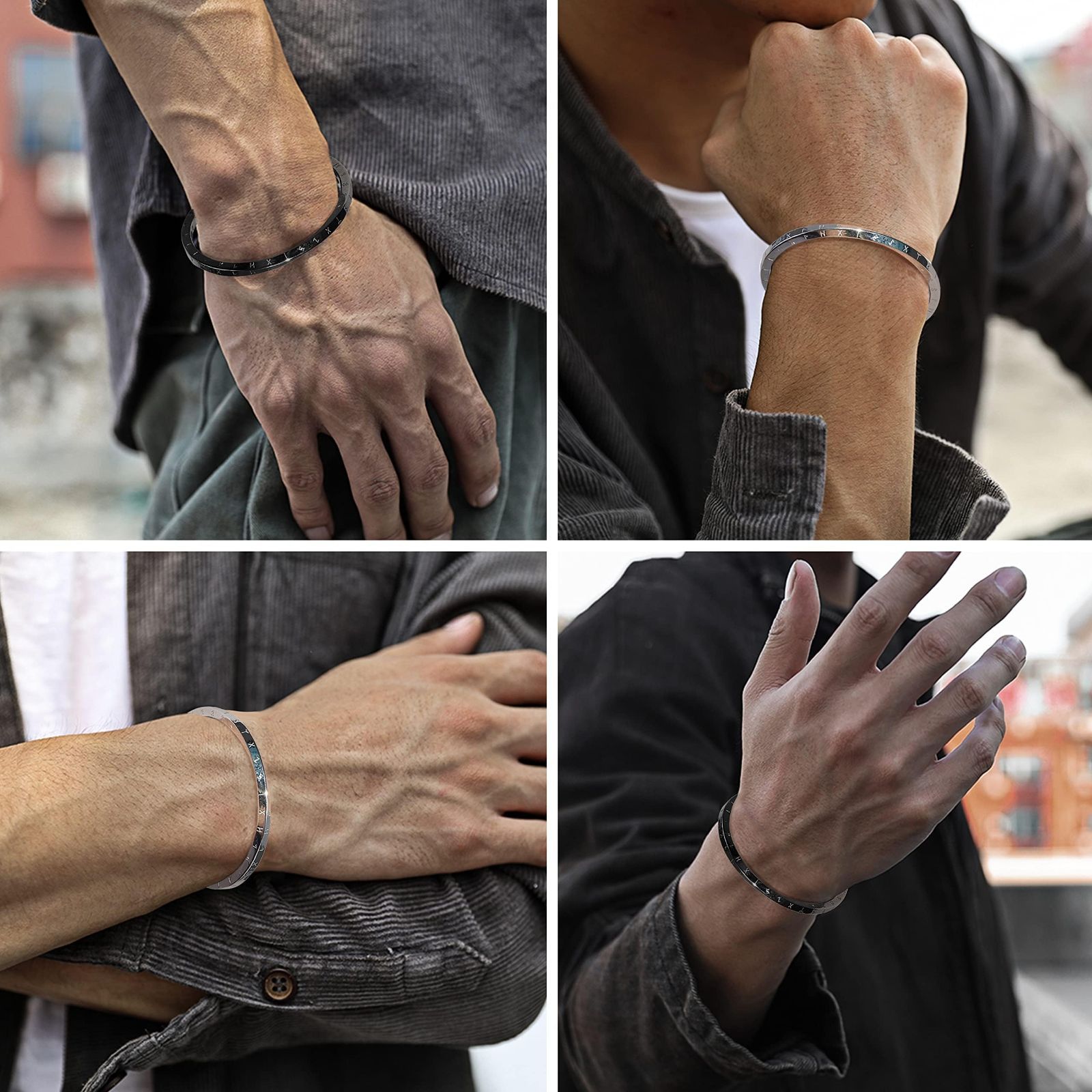 【ブレスレットメンズ2点】素材:サージカルステンレス316L、頑丈で耐久性がある。2点セット:シルバー&ブラック。ブレスレットの表面は滑らかで、着け心地が良く、軽量で錆びにくく、敏感肌の方にも安心です。毎日の服装に最適で、男女兼用。