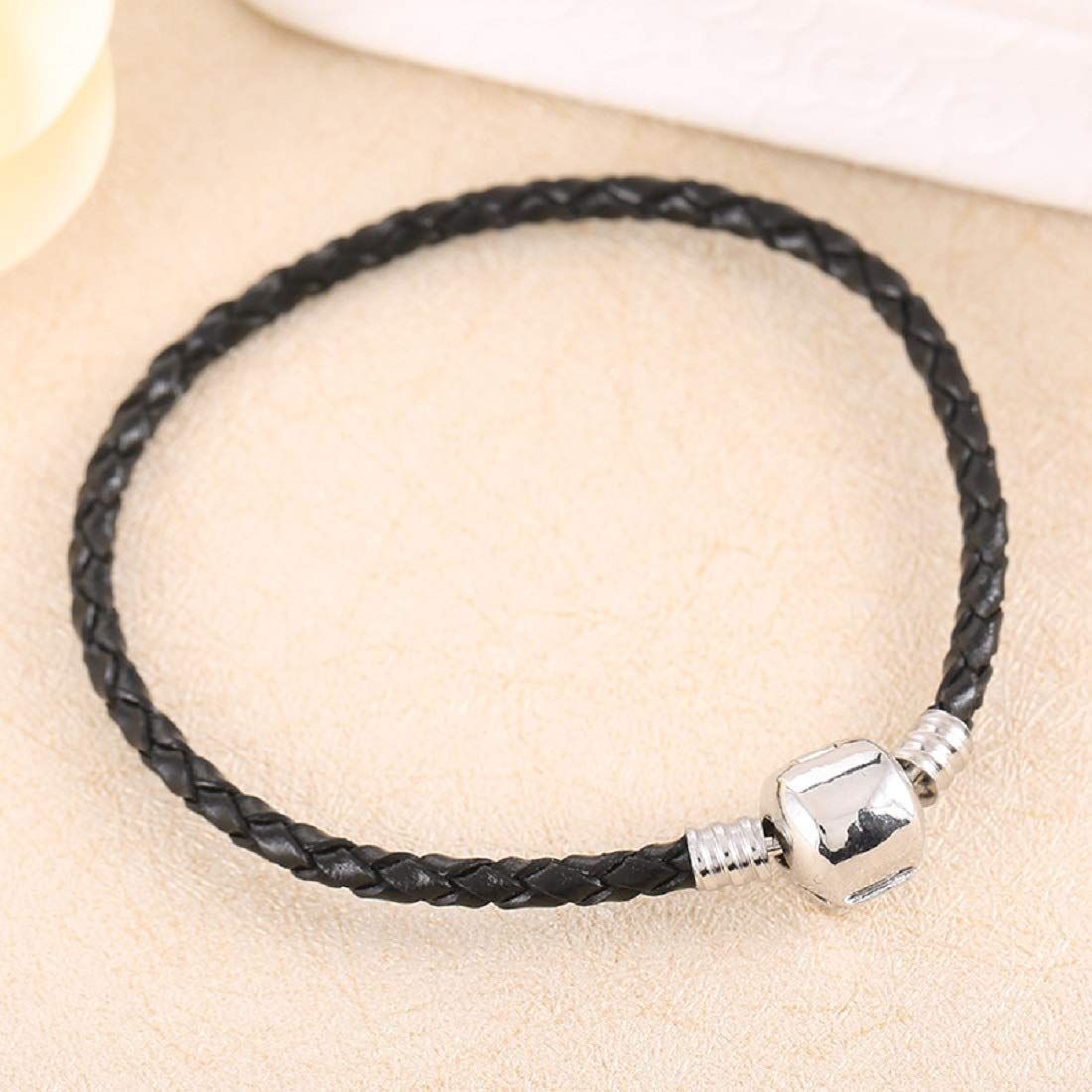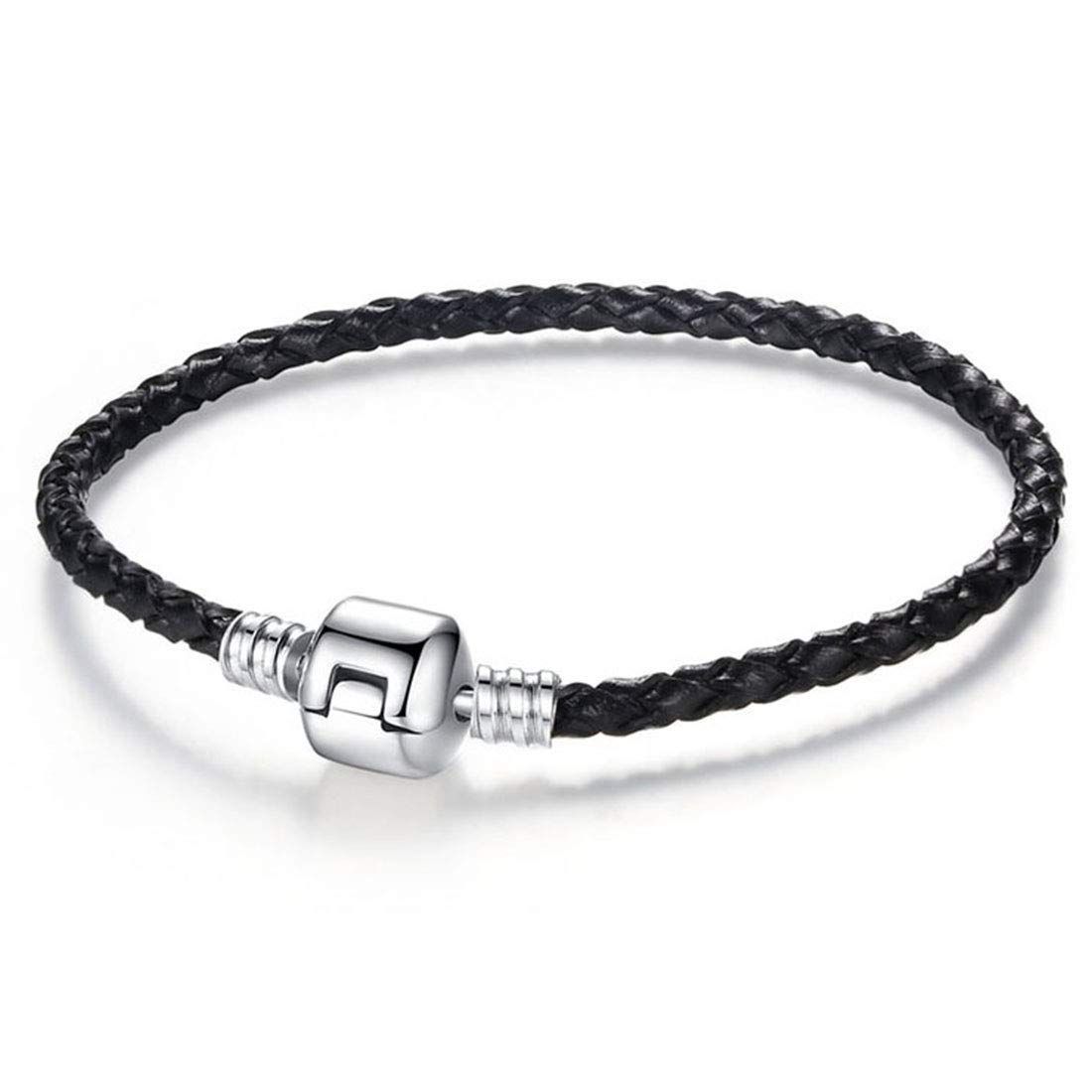Deelfelレザー ブレスレット メンズ レディース シルバー ブラック 黒 革 編みブレスレット バングル ペア カップル 男女兼用ブレスレット 肌に優しい アレルギー対応 アンティーク (黒)
