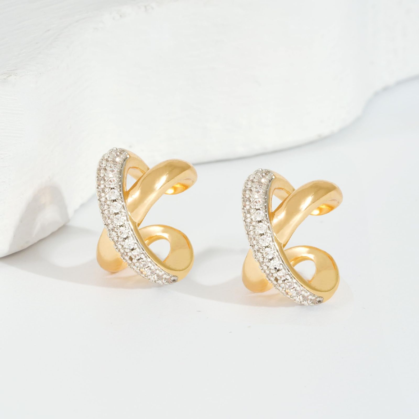 ★【安心素材】イヤリングに14kゴールドコーティングを採用することで、金属アレルギーの方も肌に優しい、安心のおしゃれを楽しめます。高級品質のキュービックジルコニアを使用、女性に輝く美しさを極める。