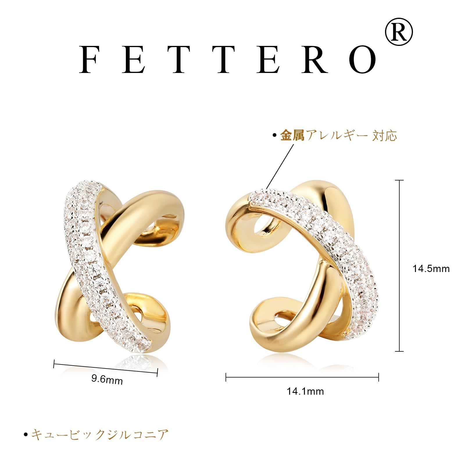 Fettero イヤカフ イヤリング 2個セット 14Kゴールドメッキ ピアス イヤーカフ ノンホールピアス