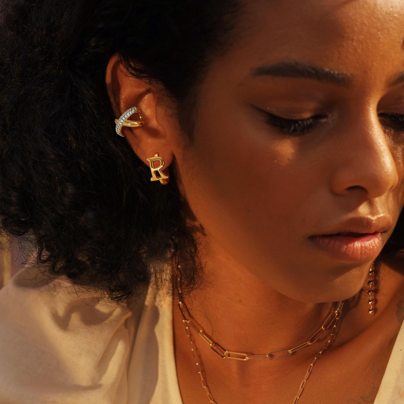 ★【人気デザイン】華奢なキュービックジルコニアを散りばめた上品なイヤーカフ。 洗練されたデザインでスタイリングを選ばずデイリーにも、オケージョンスタイルにもお使い頂けるデザインです♪