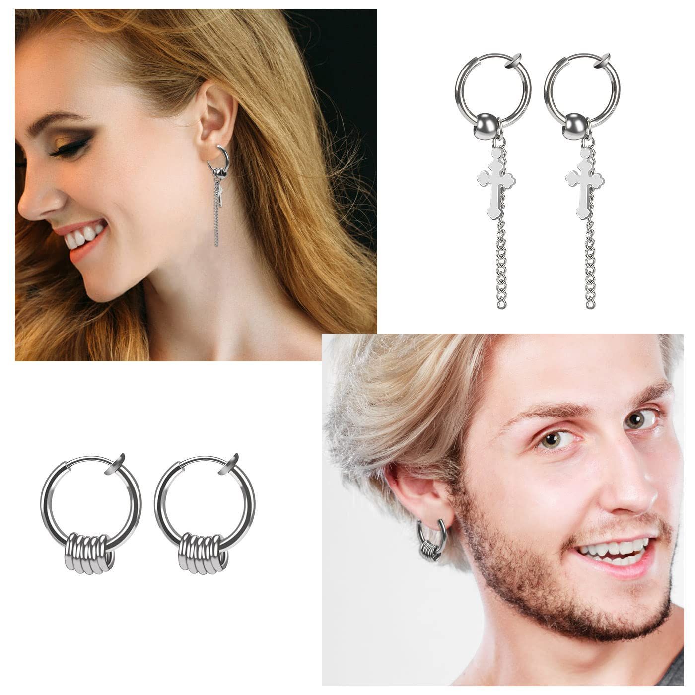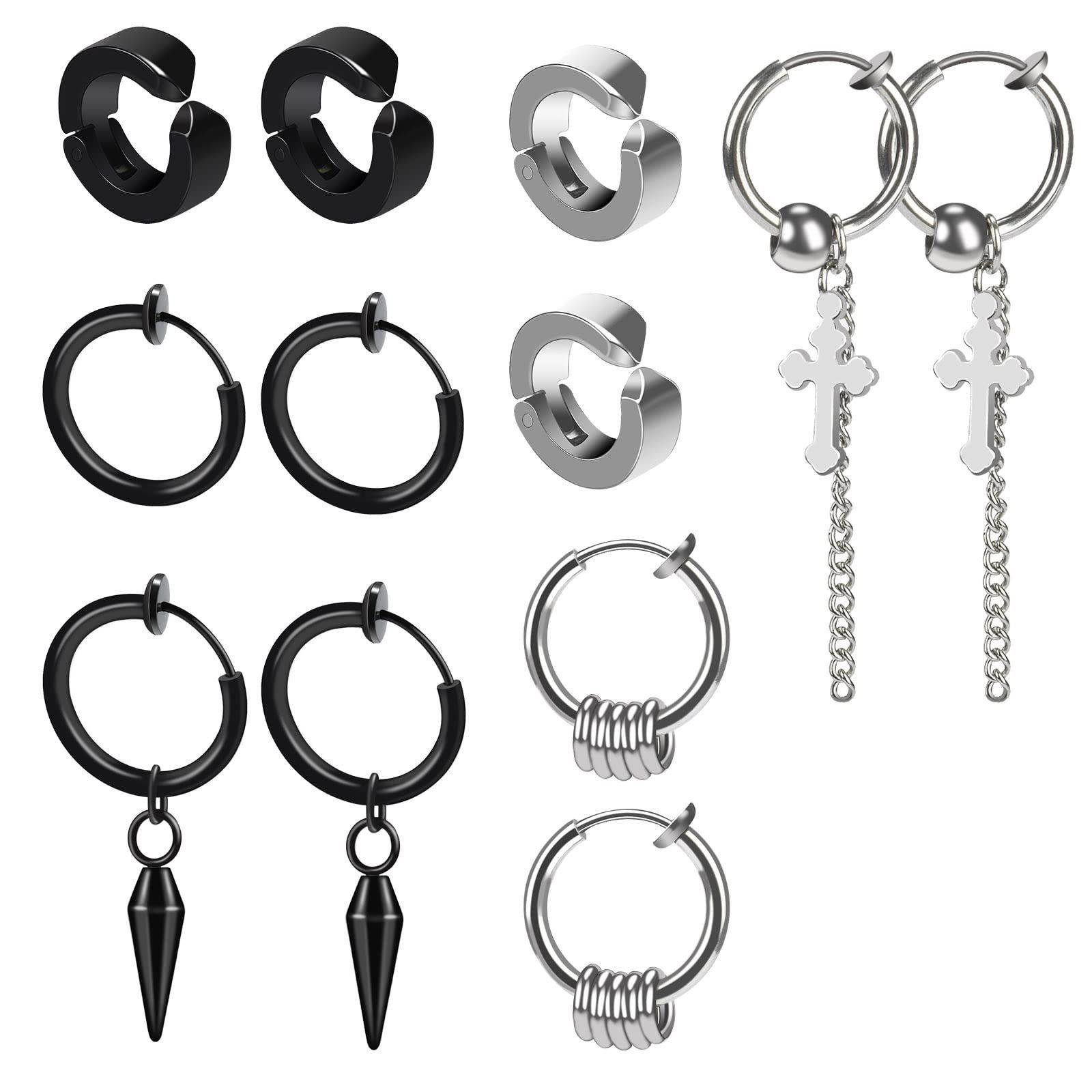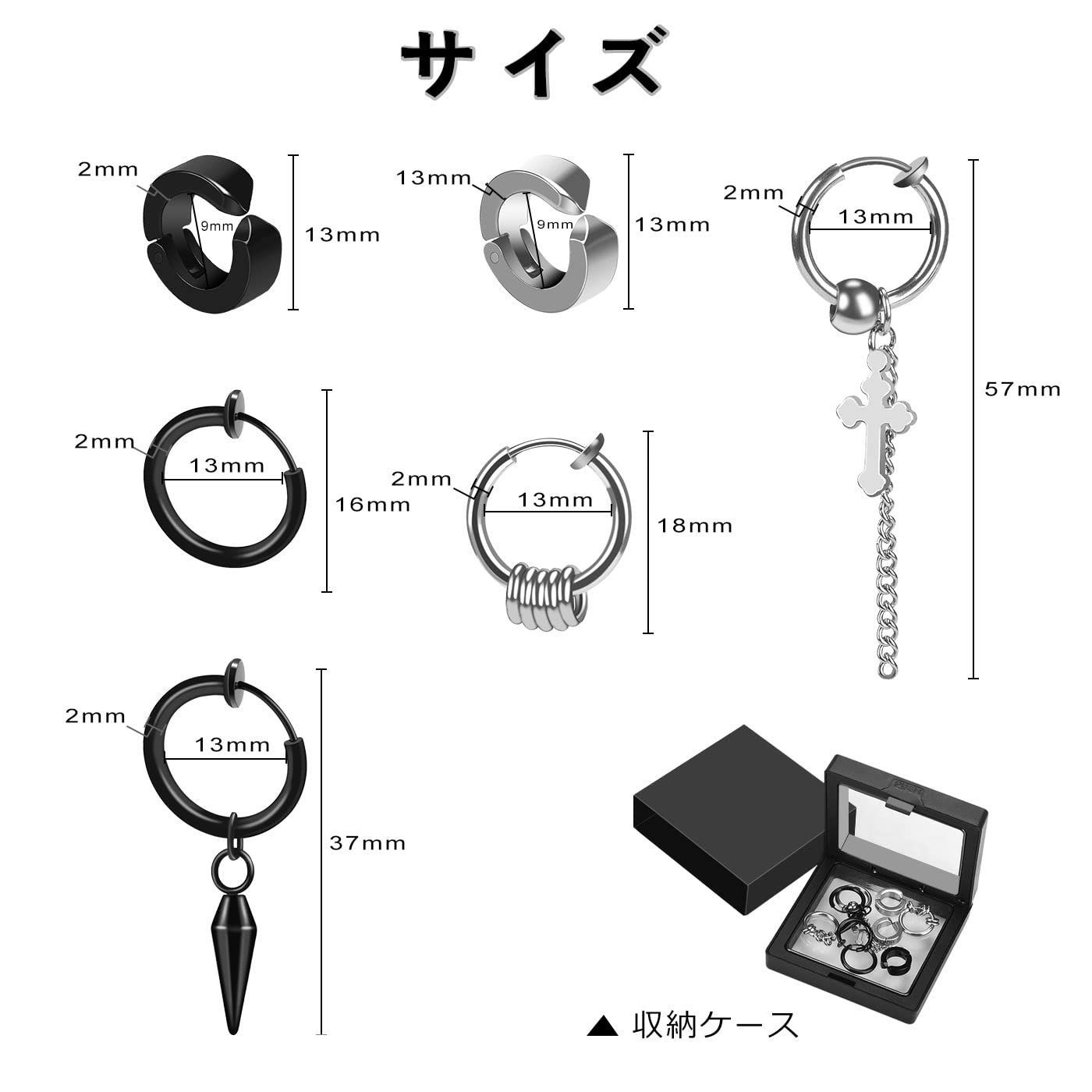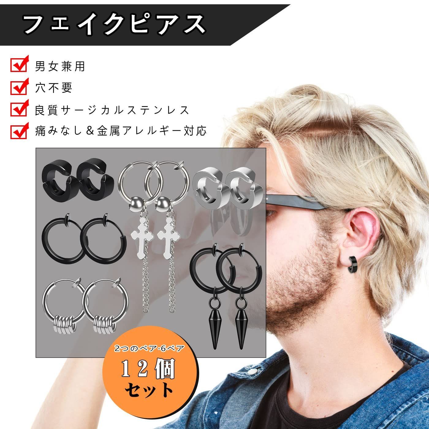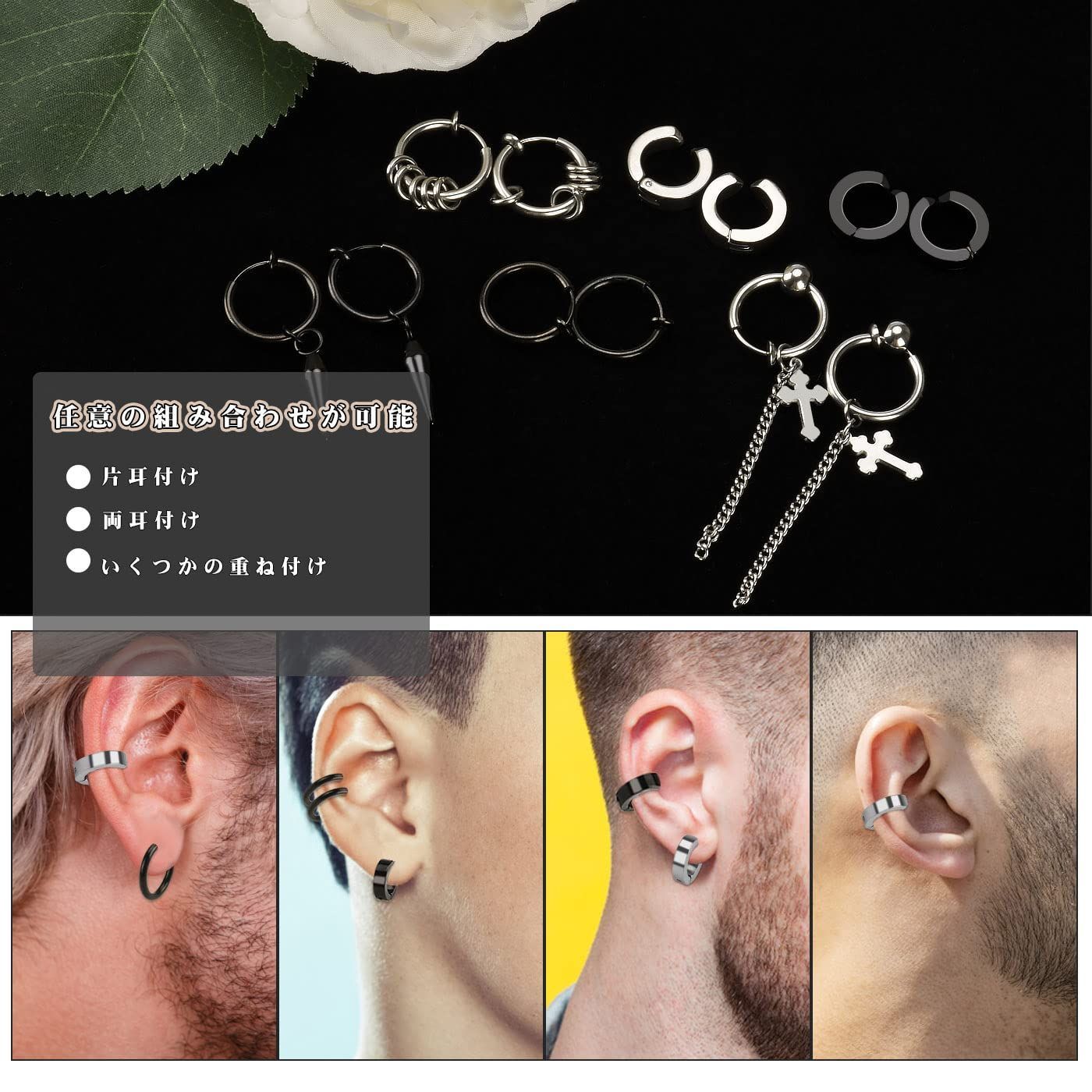 フェイクピアス メンズ ピアス イヤリング 穴不要 収納ケース付き イヤーカフ シンプル 十字架 オシャレ メンズ レディース ユニセックス 両耳用 金属アレルギー対応 シルバー 黒 12個セット