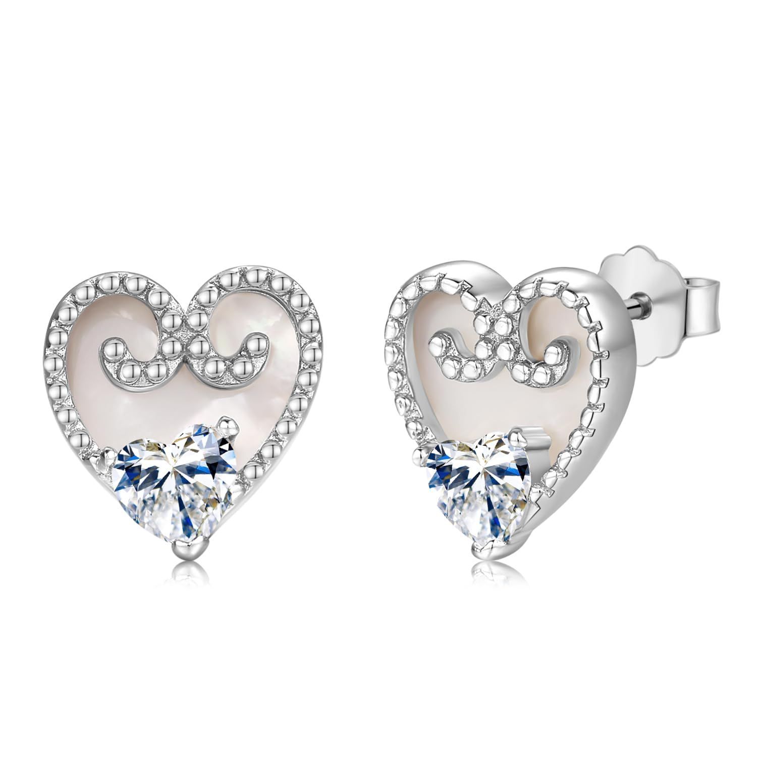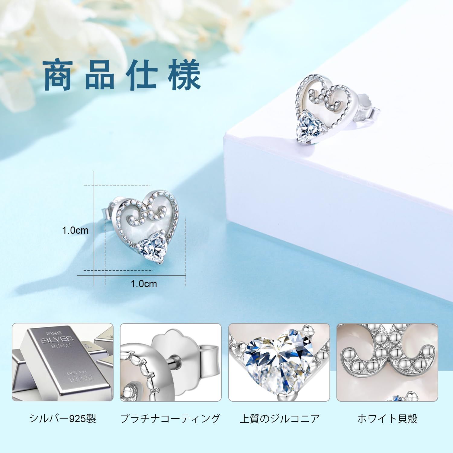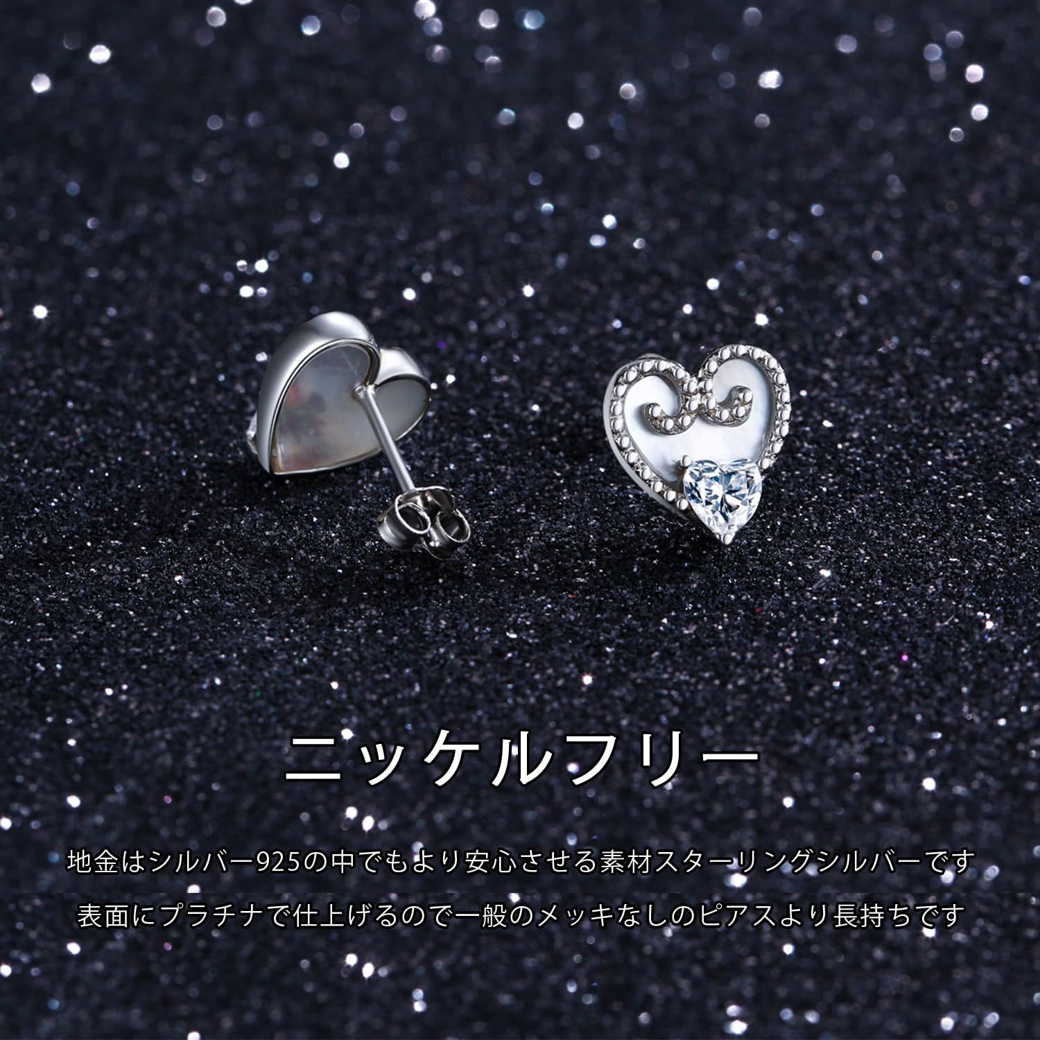 ハート ピアス ホワイトシェル スタッドピアス 金属アレルギー対応 シルバー925 白蝶貝 レディースピアス 貝殻 シロチョウガイ ピアス プラチナ仕上げ ジルコニア ラブ レディース ピアス CZダイヤモン ホワイトデー 母の日 クリスマス プレゼント アクセサリー 女性ヘの贈り物 ギフト 誕生日 お祝い 記念日