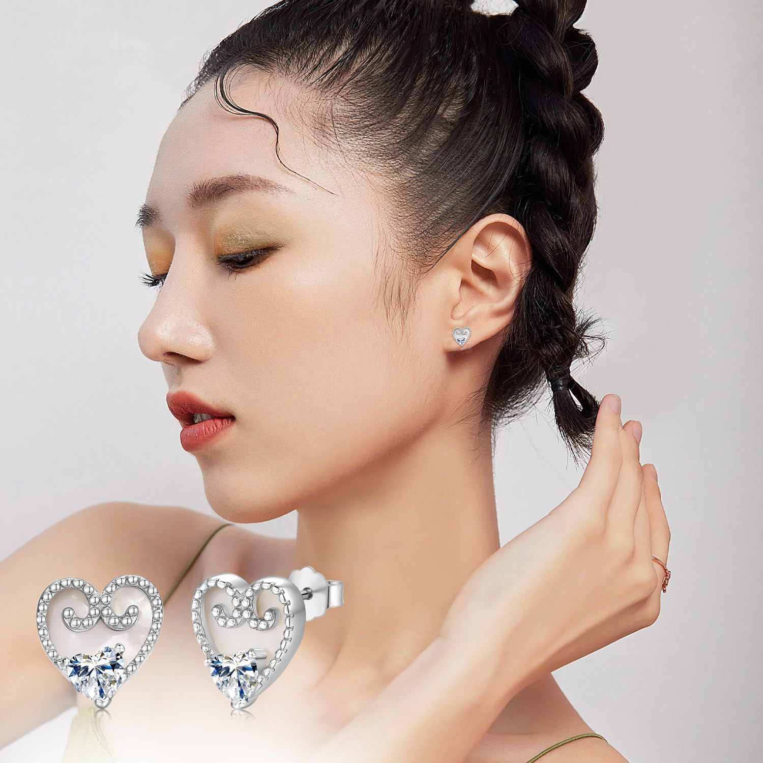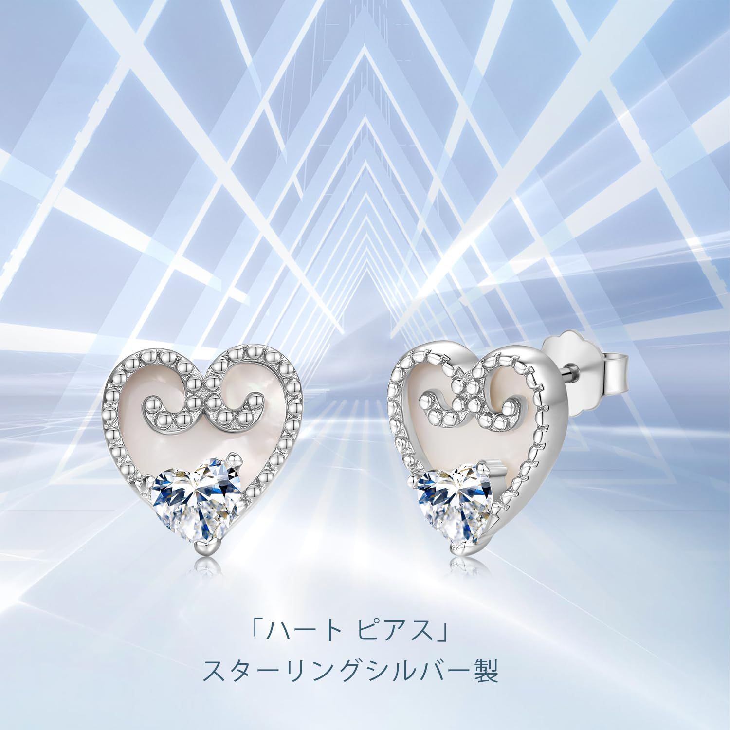 【ハートピアス】シルバー、ジルコニア、ホワイトシェルという三つのハートを組み合わせて作り上げたレディースピアスです。ある程度の厚みがあるが、ちょうどいいサイズで軽く耳元を飾ります。人気のハートモチーフ、派手すぎないデザイン、色々なシーンで活躍できそうです。