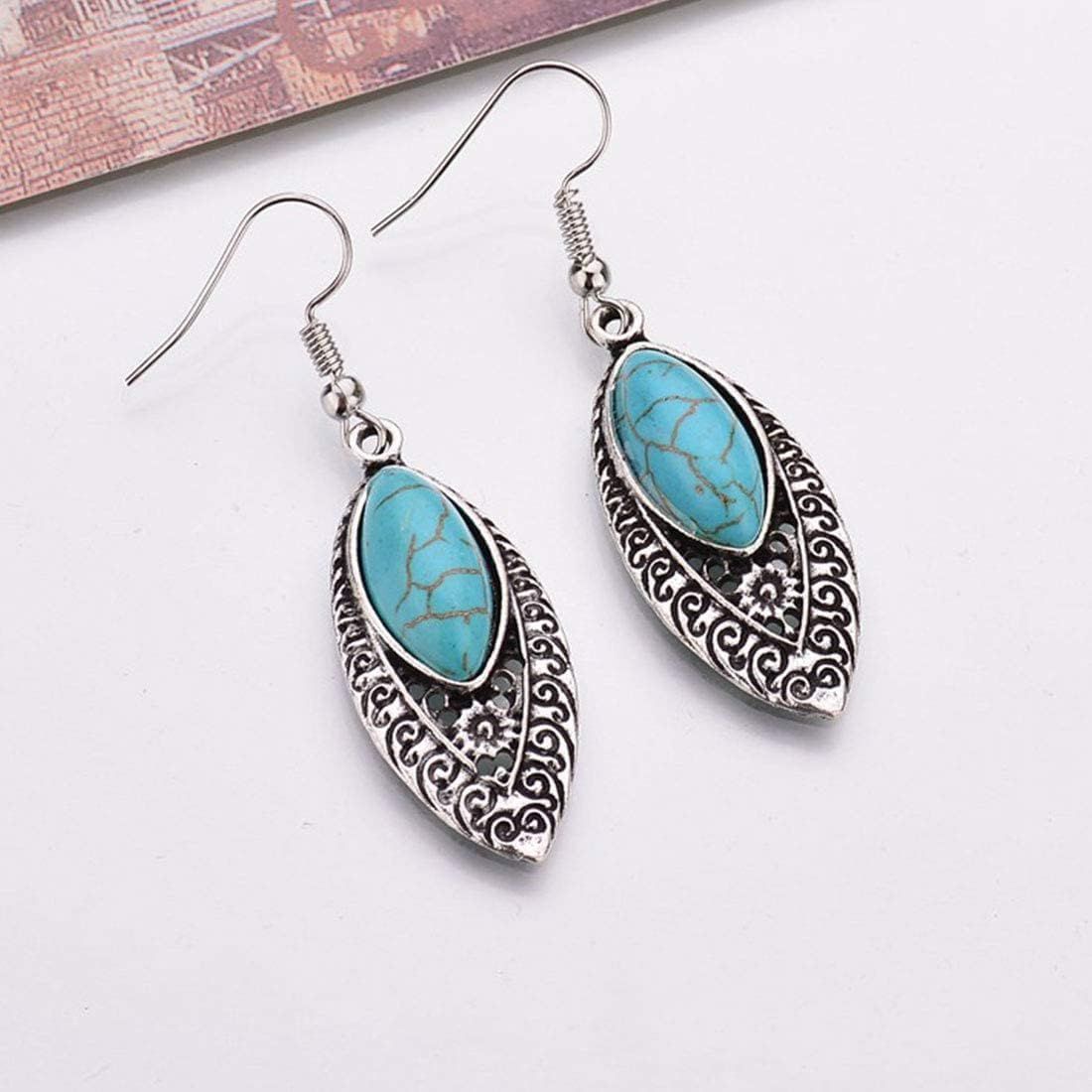 Sunyobao ピアス 金属アレルギー対応 ターコイズピアス レディースピアス フック・レバーバック シルバー925 ターコイズしずくピアス ハワイアン 揺れるピアス 緑松石 しずく フックピアス 両耳 小顔効果