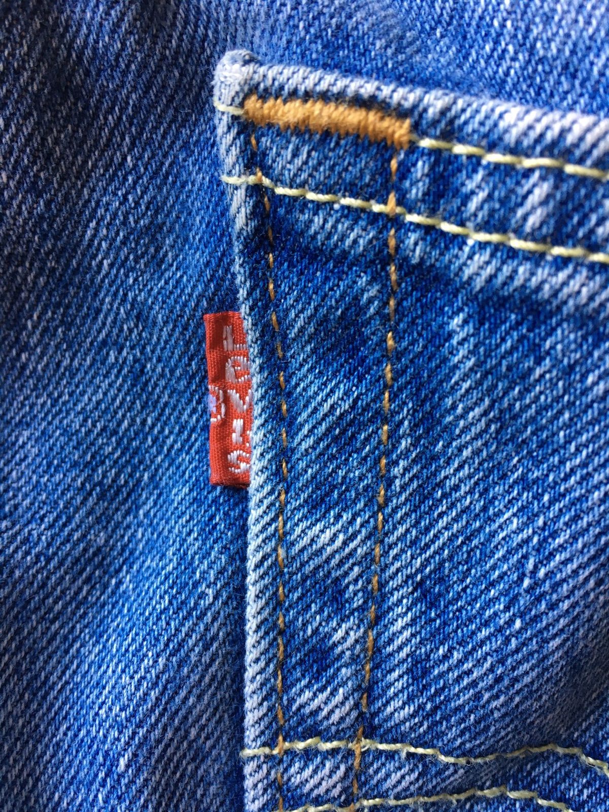 爽やかなスカイブルーのようなウォッシュ加工が施されたリーバイスのデニムパンツです。