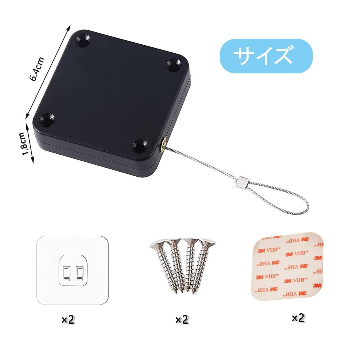 【商品仕様】ドア クローザーサイズ:長63×高63×幅18mm、ロープ長 約 1.2m、引き力:500グラム、軽量でコンパクト!持ち運びにも便利。