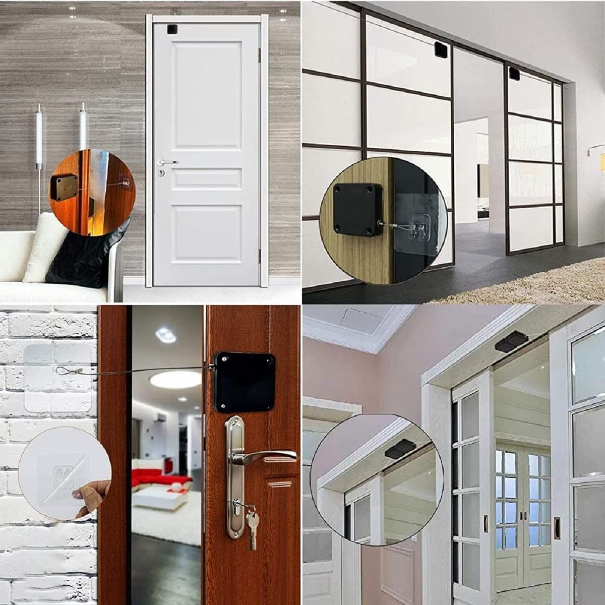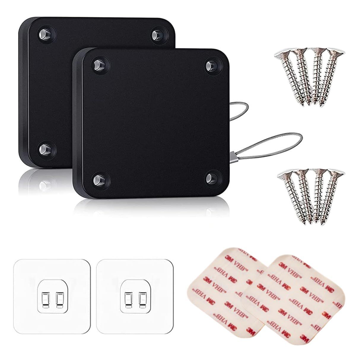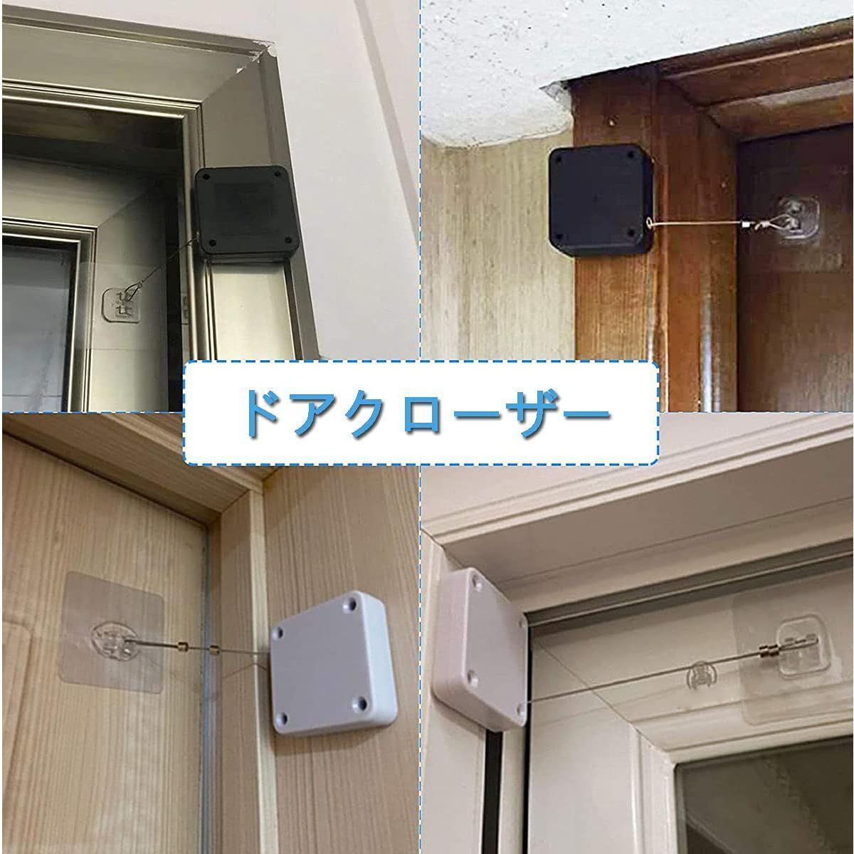 YFFSFDC ドアクローザー 自動ドアクローザー ワイヤーロープ 室内用 自動ドア 引き戸 小型 静音 貼り付け ネジ 兼用 穴付き 引き戸 取付簡単 2個セット (ブラック 500g 2個)