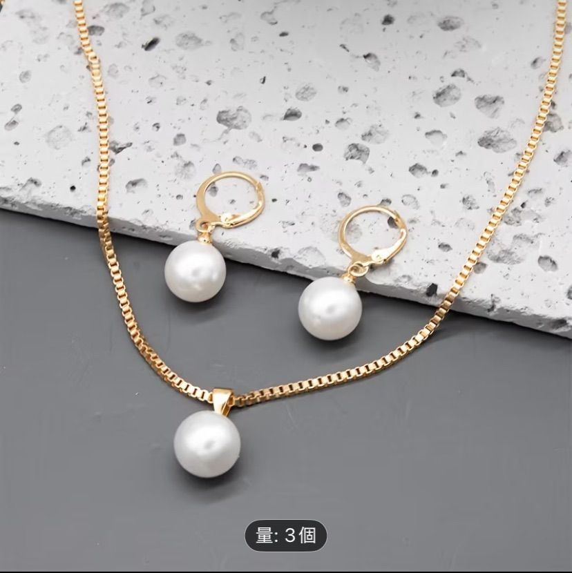 【高見え3点セット】ゴールド×大粒パール ピアス&ネックレス 上品アクセサリー