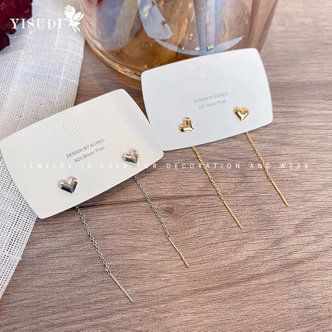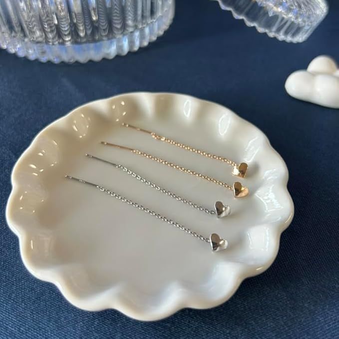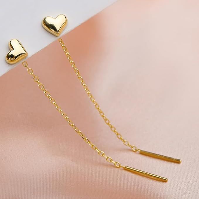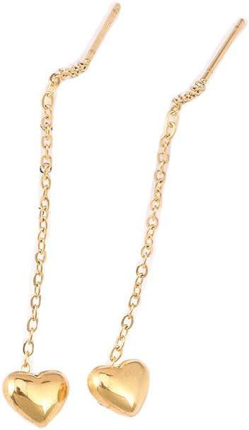 デザイン: 上品なハートモチーフと繊細なチェーンが特徴的な、スタイリッシュなアメリカンピアス