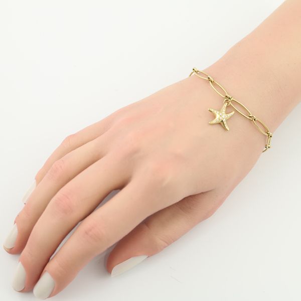 ユニークなフォルムを持つスターフィッシュに煌めく厳選ダイヤが装いに素敵なアクセントを与えてくれる、ティファニー エルサ・ペレッティデザインのダイヤモンドブレスレットです。