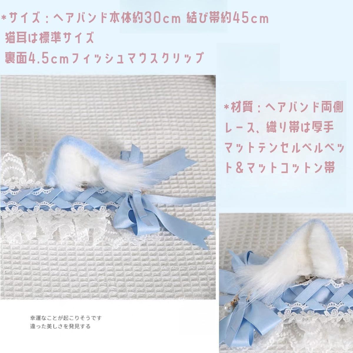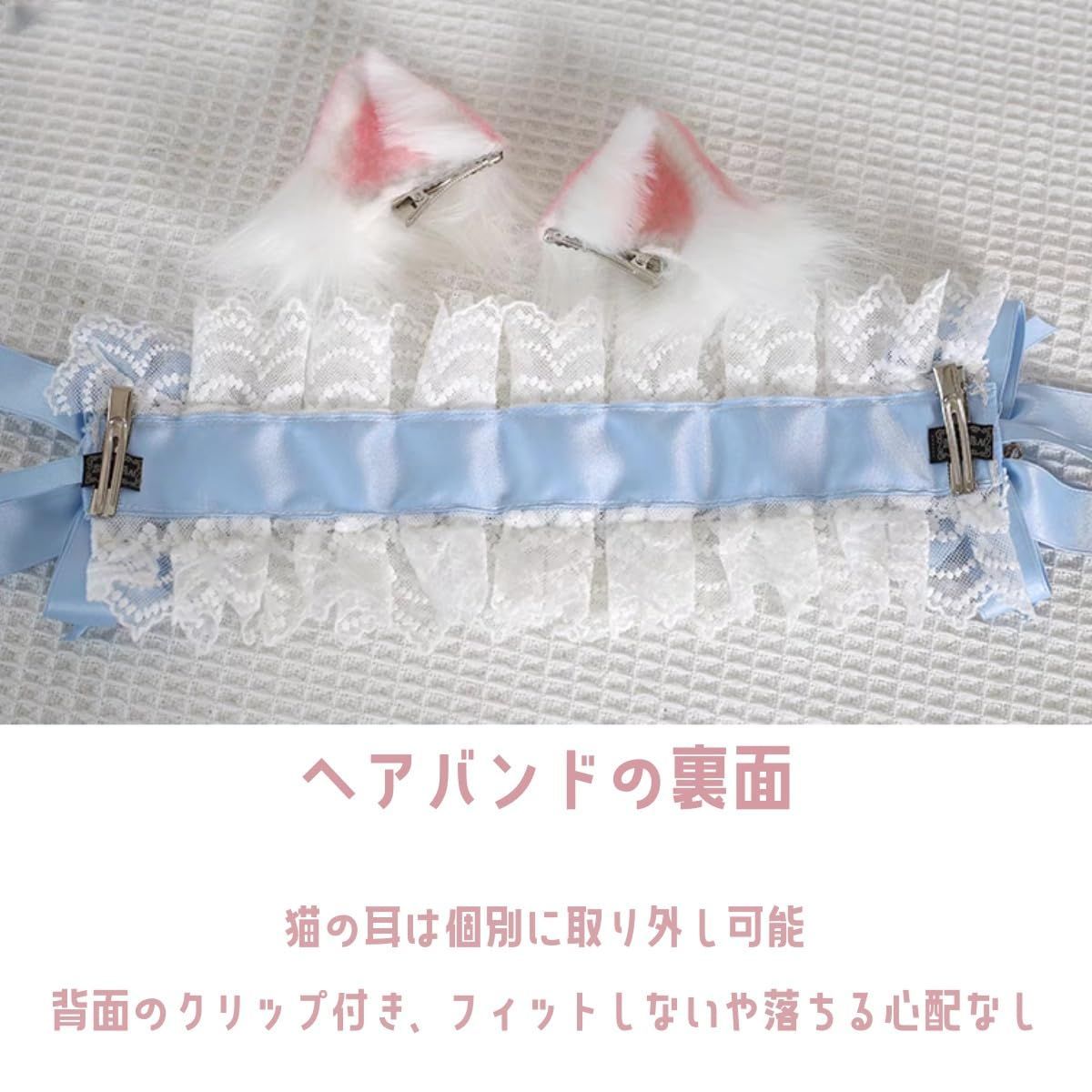 [Ligwon] ヘッドドレス 猫耳 ネコ耳 カチューシャ ロリータ リボン ヘアアクセサリー 髪飾り 蝶結び レース ねこ耳 ゴスロリ メイド 森ガール ヘッドアクセサリー かわいい ハロウィン パーティー イベント 学園祭 文化祭 お茶会 (ライトブルー+ピンクの猫耳)