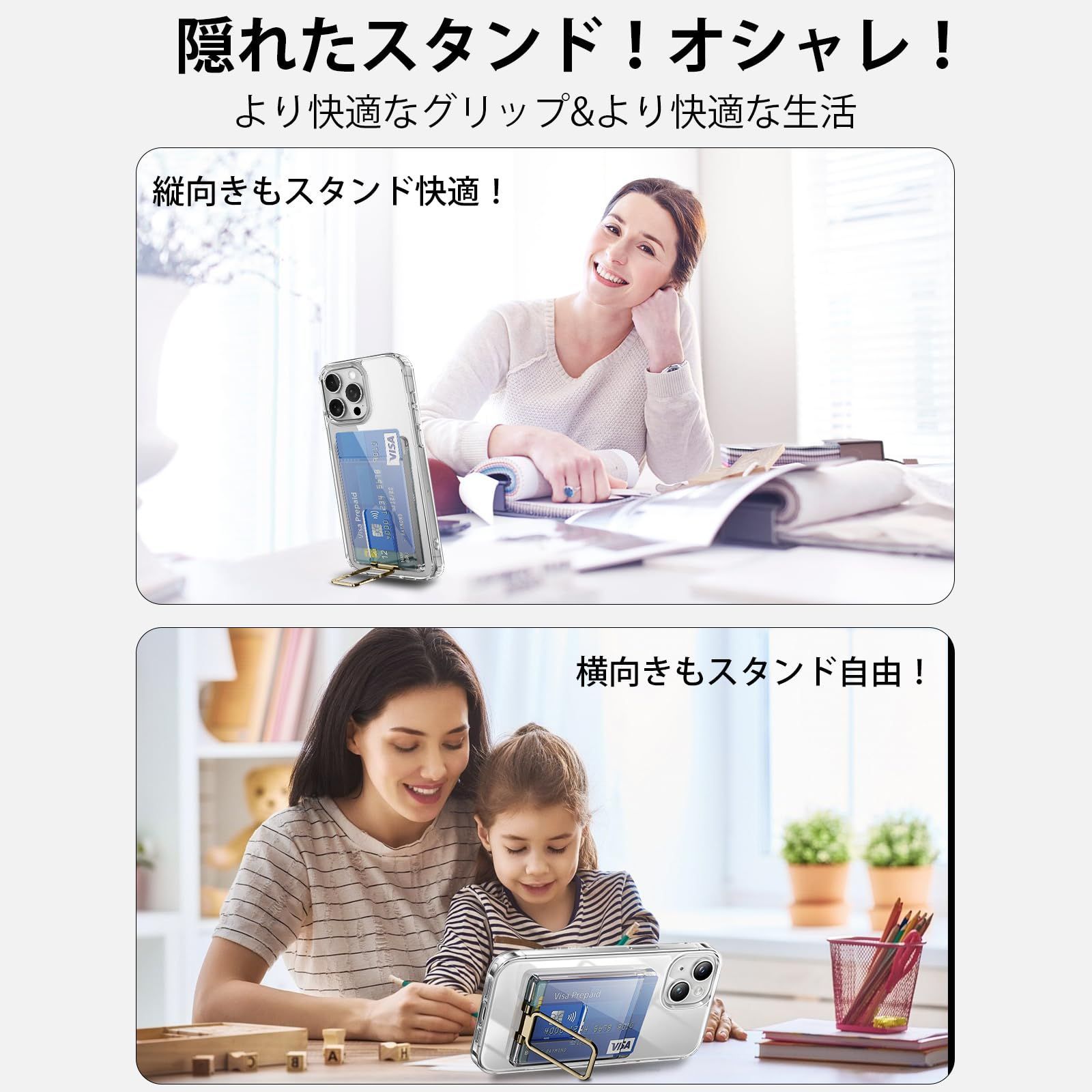 【カード最大2枚収納】超薄型でカード収納と携帯電話を一つに! 交通カード、クレジットカード、ICカード、定期券、ビジネスカード、名刺などが収納でき、出かけにとても便利です。また、黄ばみにくい透明なケースなので様々なカードデザインで他にない個性を表現できます。