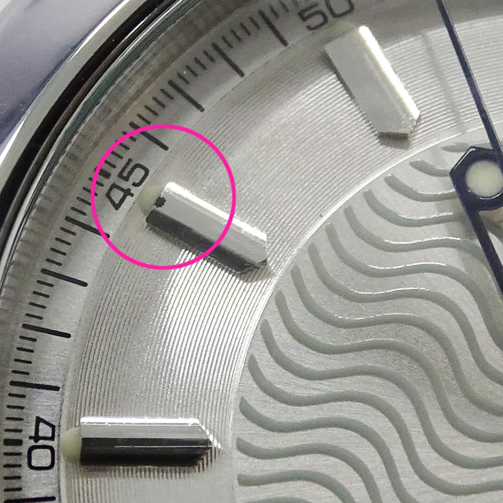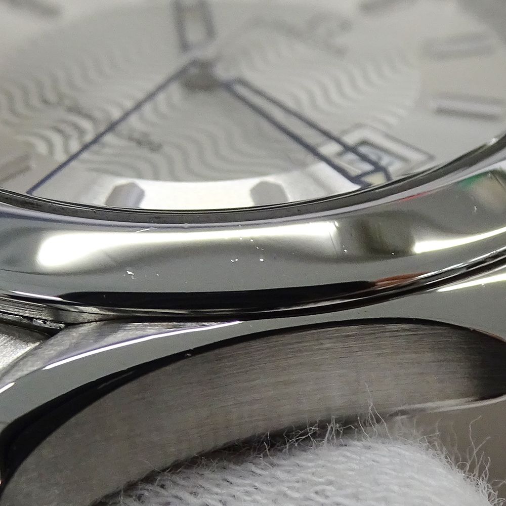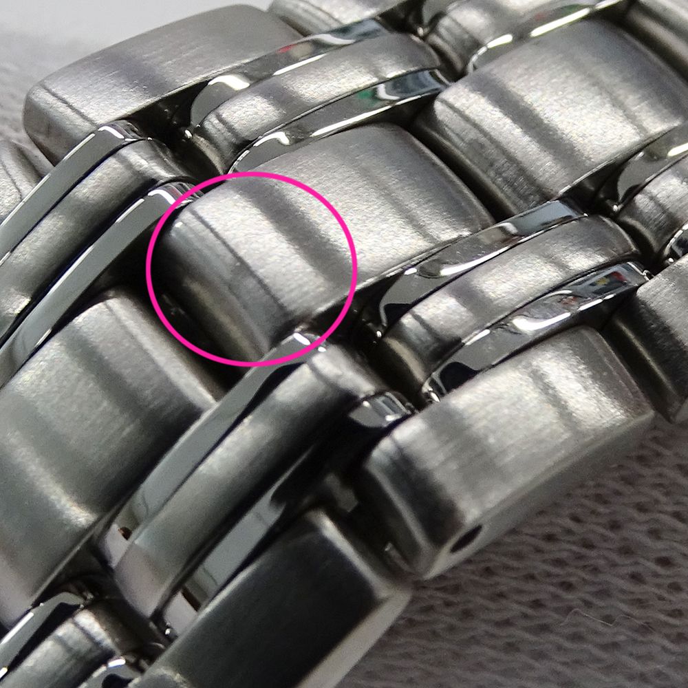詳細: 風防は綺麗な状態、インデックスに汚れ、ベゼルに傷・打痕、ブレスに小傷・薄スレ、バックル開いた部分にスレ傷、裏蓋に傷あり。