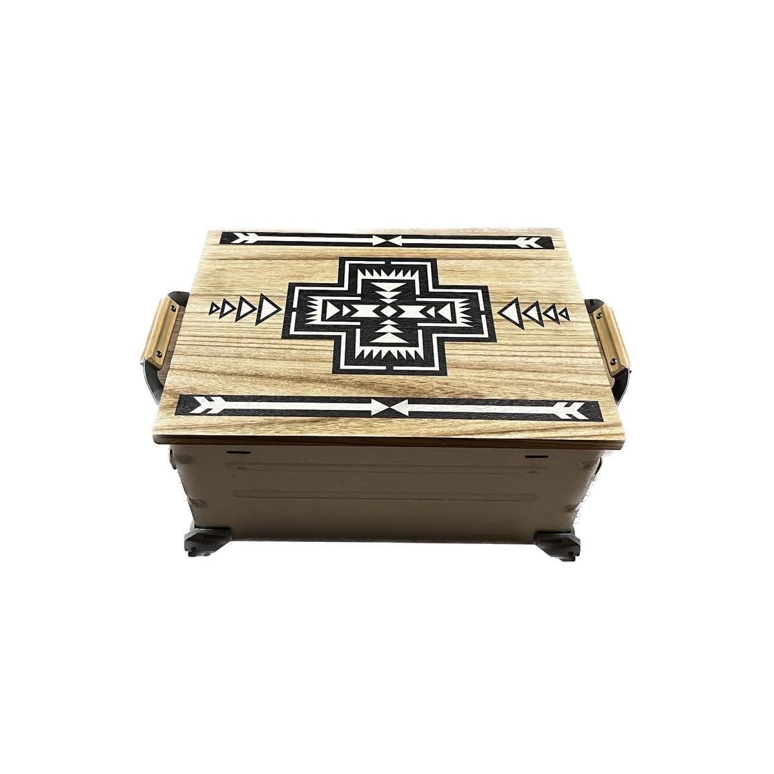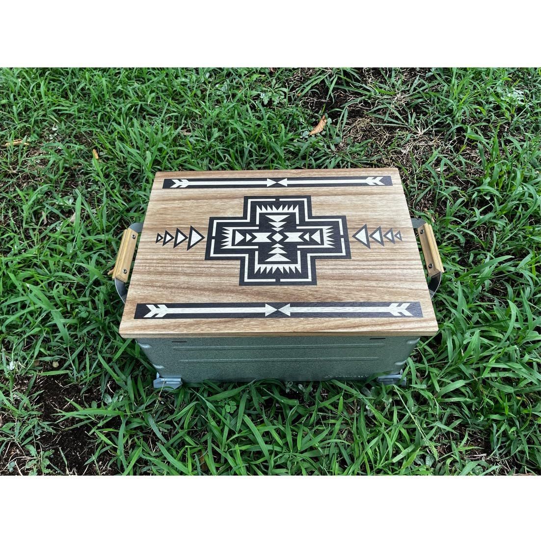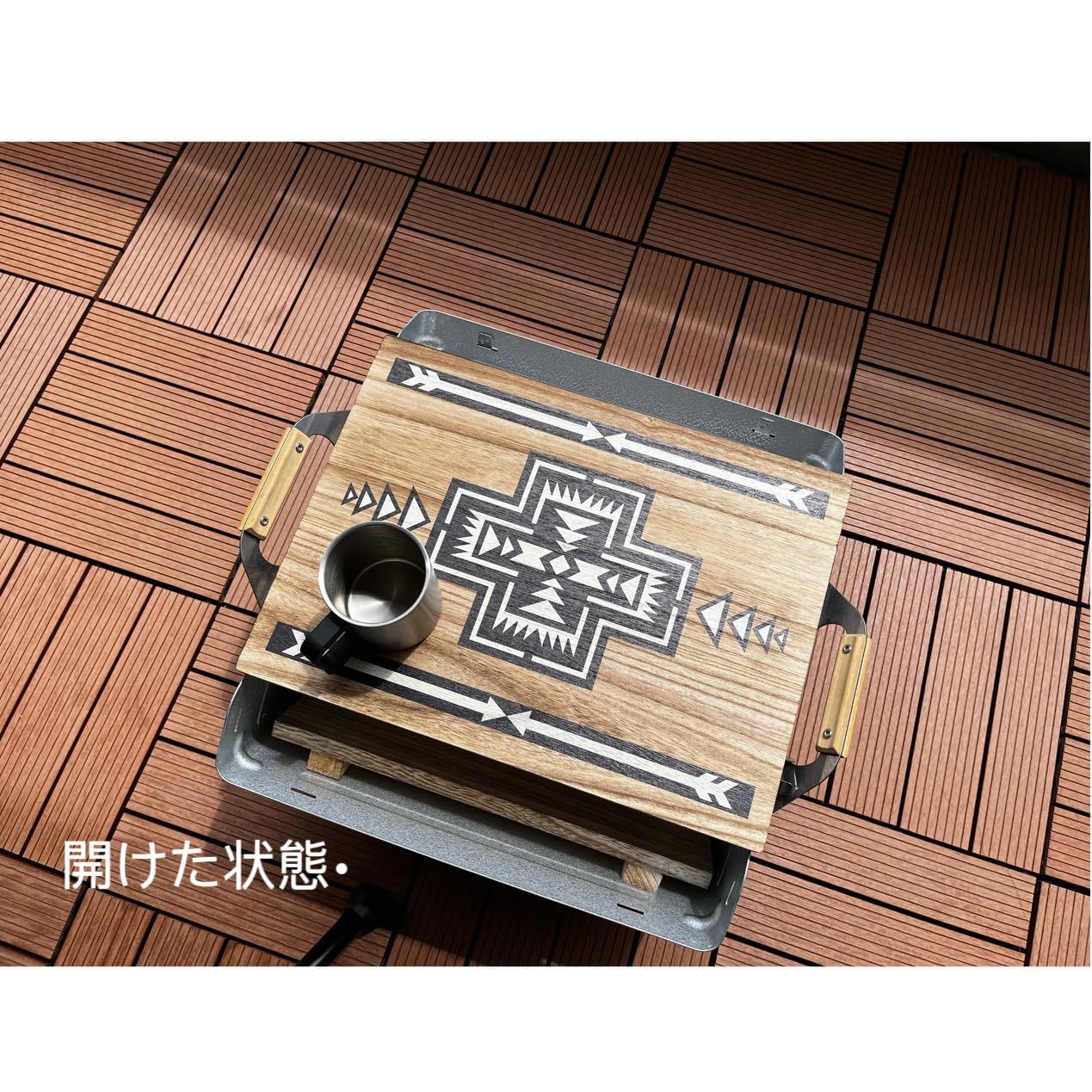【オルテガ柄付き】ハンドメイド天板、オルテガ柄仕上げでおしゃれなに!シェルフコンテナに天板を加えるだけで用途が劇的に広がります。 キャンプのテーブルまたは室内やベランダでの簡易テーブルとして使えます。