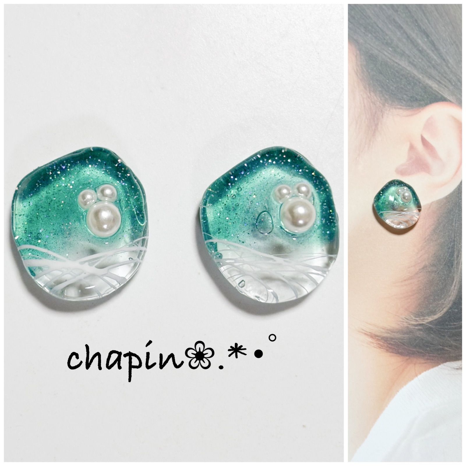 ( 928 )カボション ニュアンス レジン ピアス イヤリング