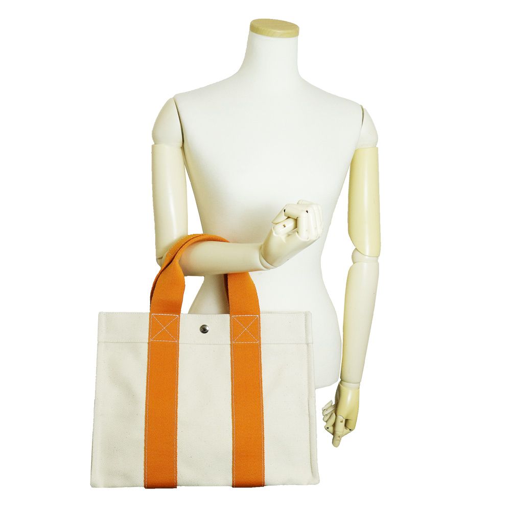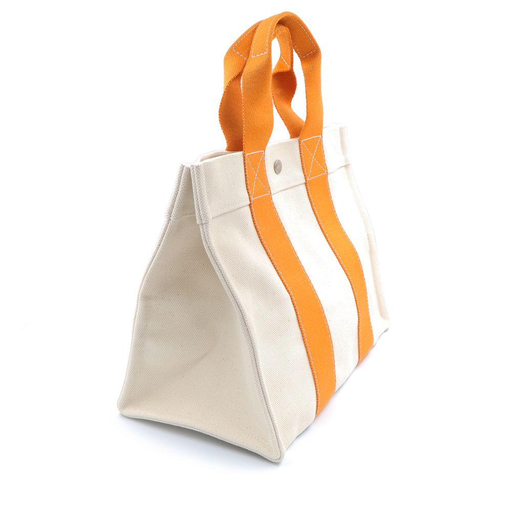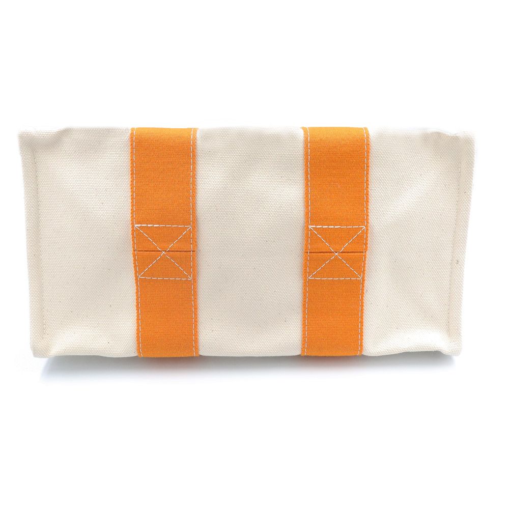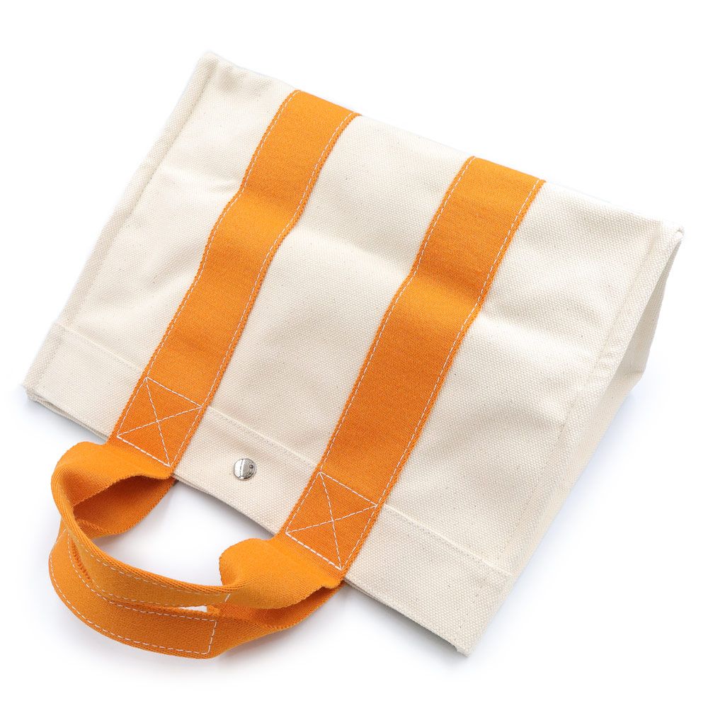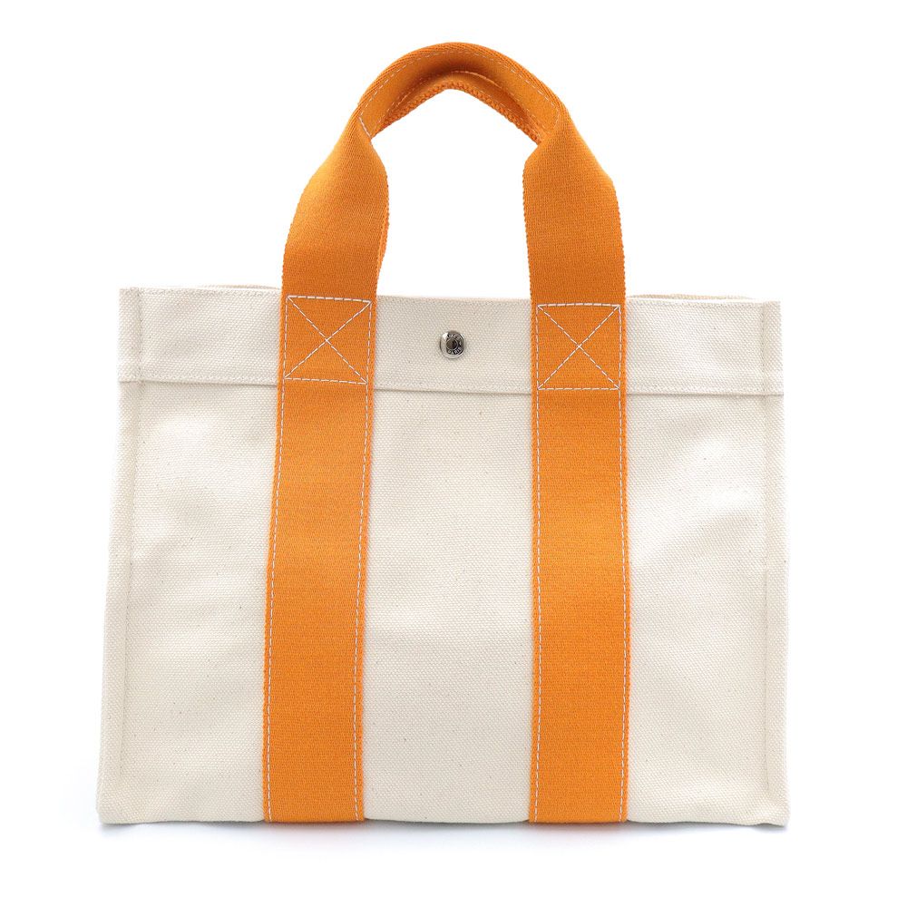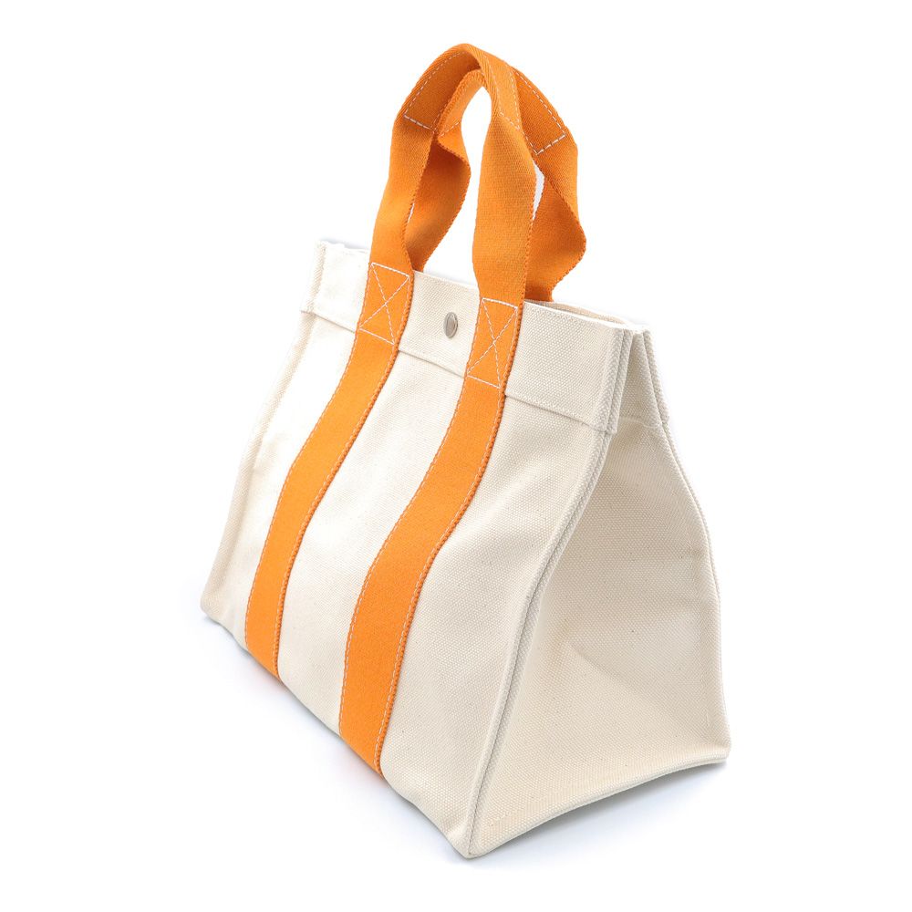 【商品紹介】アイボリーとオレンジの淡く優しい色合いが魅力のエルメスのトートバッグです。キャンバス地の素朴な手触りと、シンプルながらも内側にはポケットを2つ備え、バッグの底のサイズも広めになっているのでちょっとしたお出かけからお買い物に、長くご愛用いただくことができるバッグです。