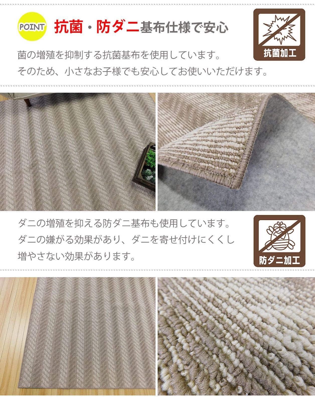 【商品詳細】組成:表地 ポリプロピレン100%、 裏:不織布貼り、 生産国:日本製、 ループパイル、 梱包:折りたたみ、 機能:抗菌・防ダニ基布使用