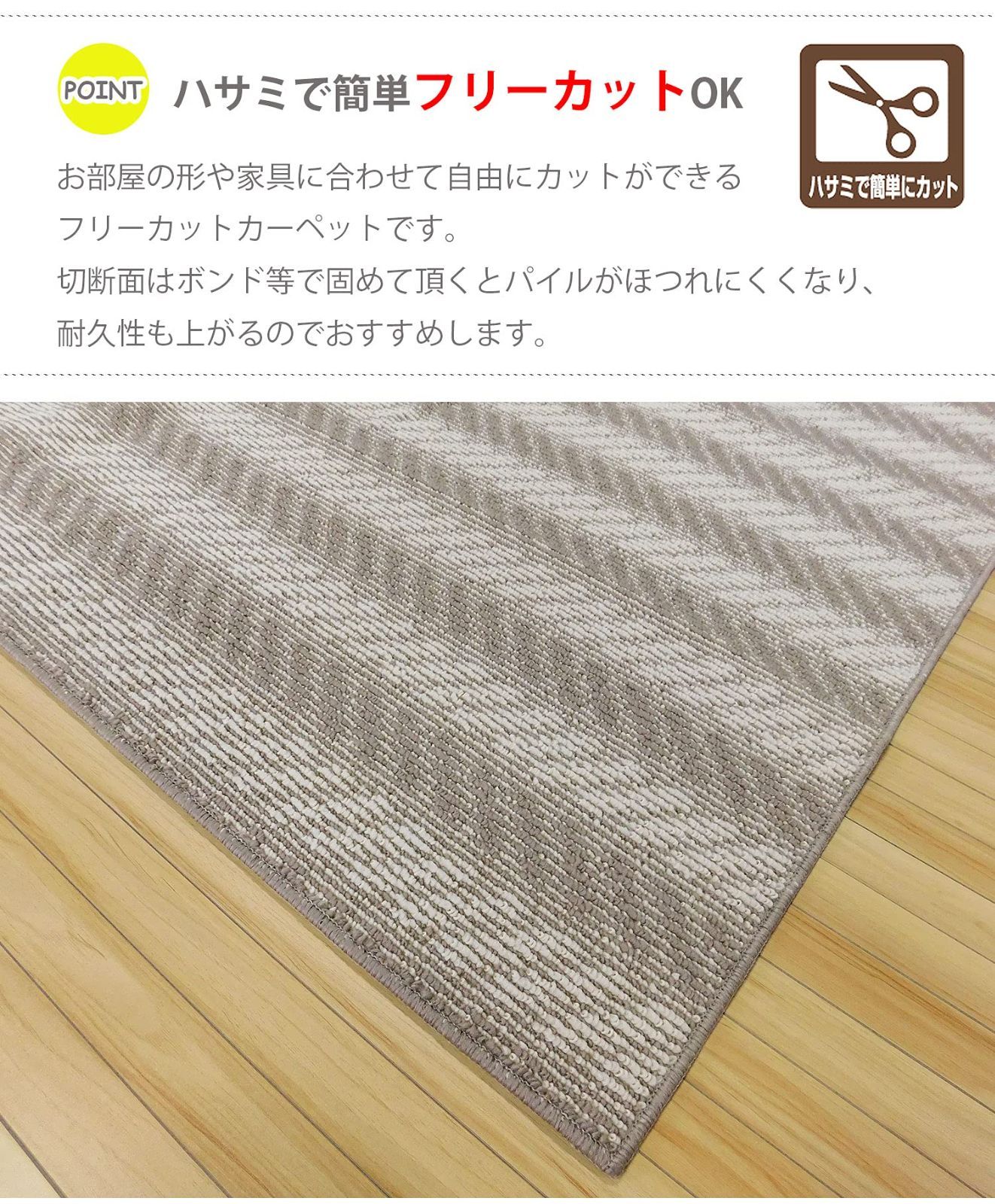 日本製のシンプルな平織カーペット。ハサミやカッターで簡単に切れるので、お部屋の形に合わせてご家庭でカットができます。