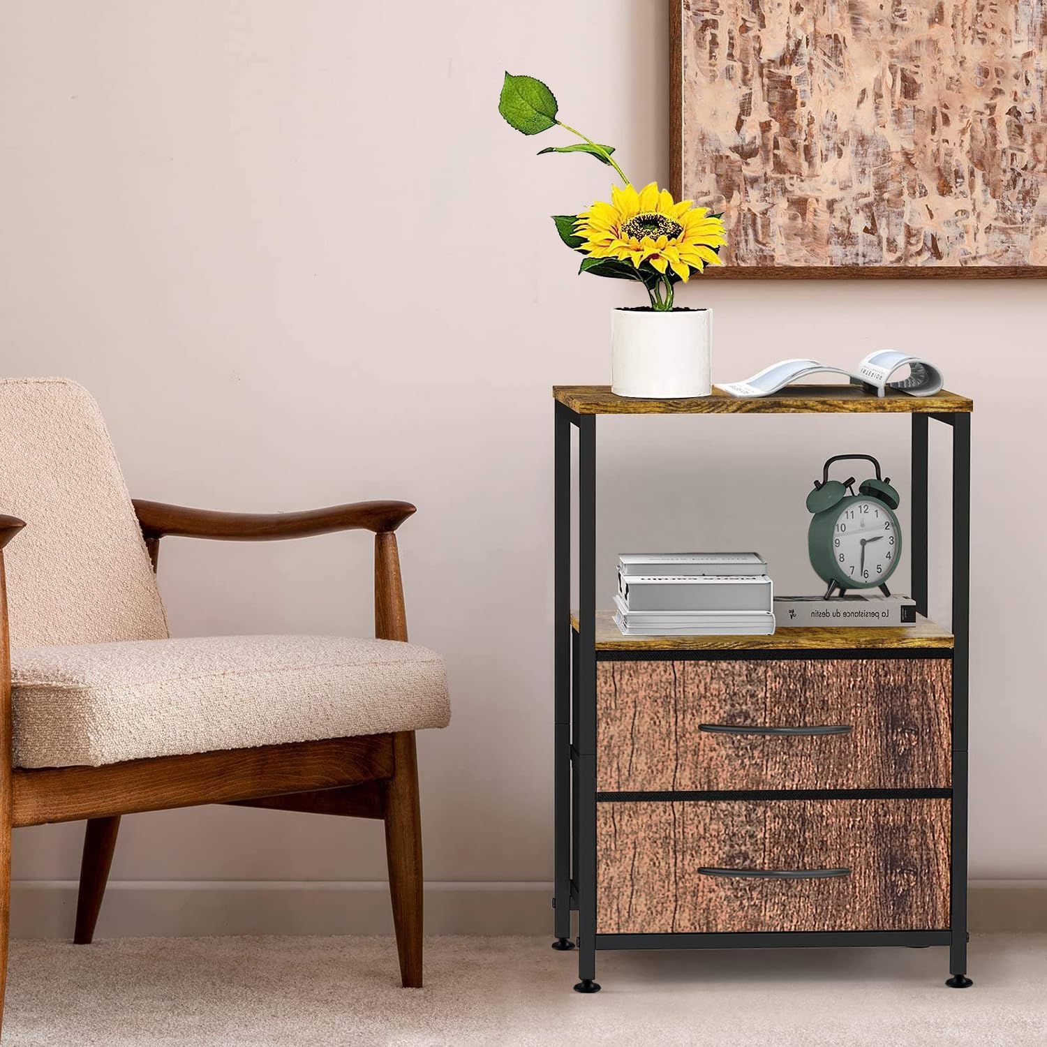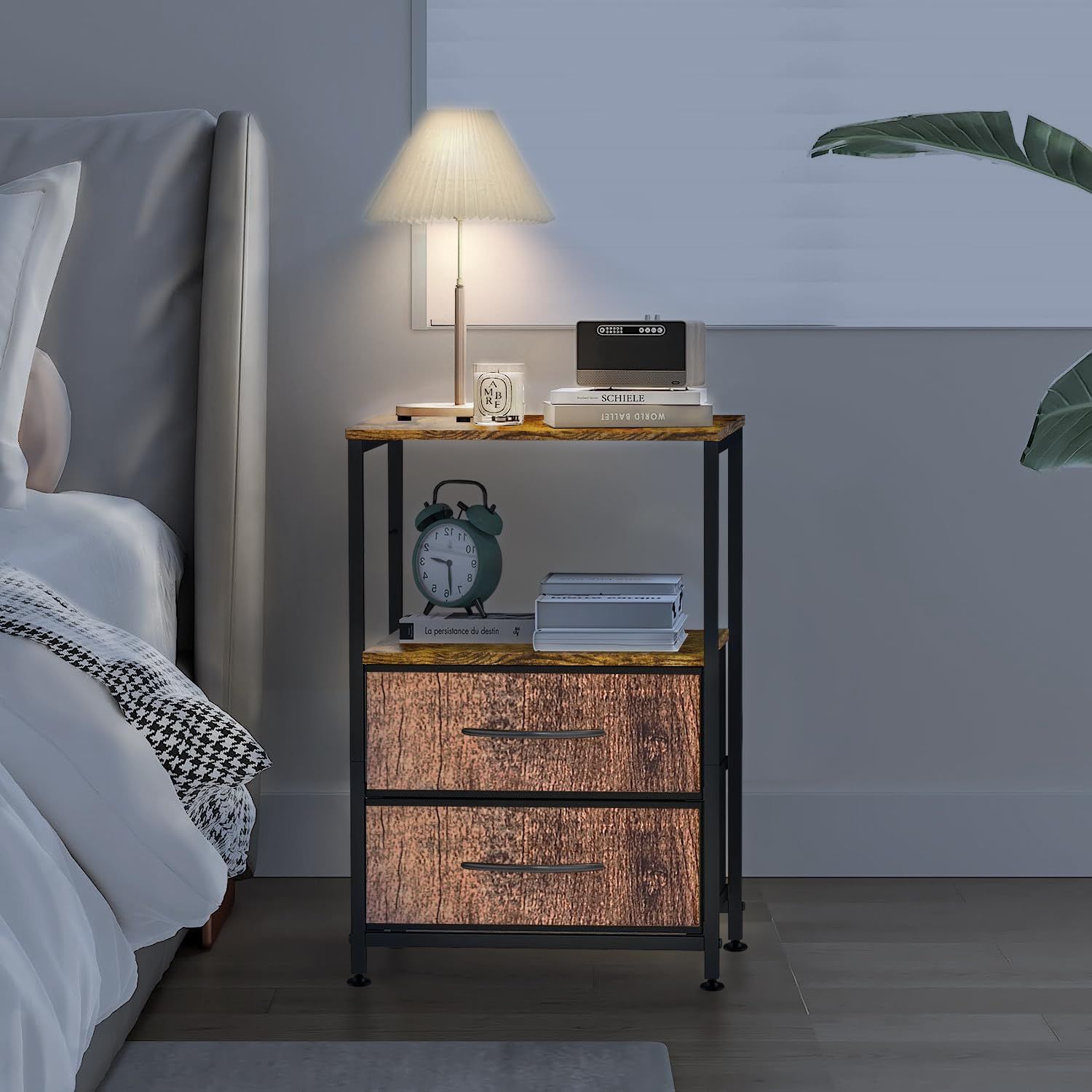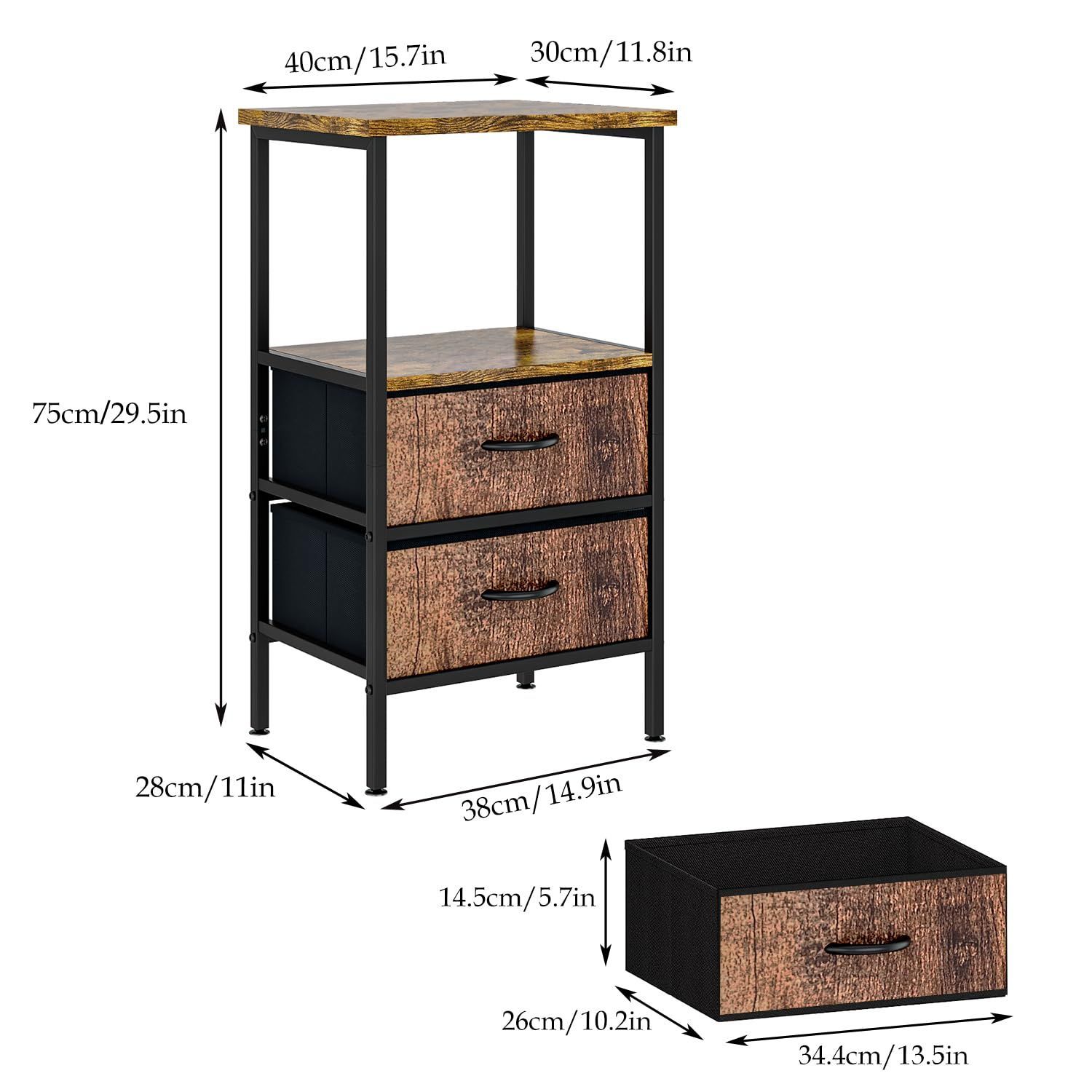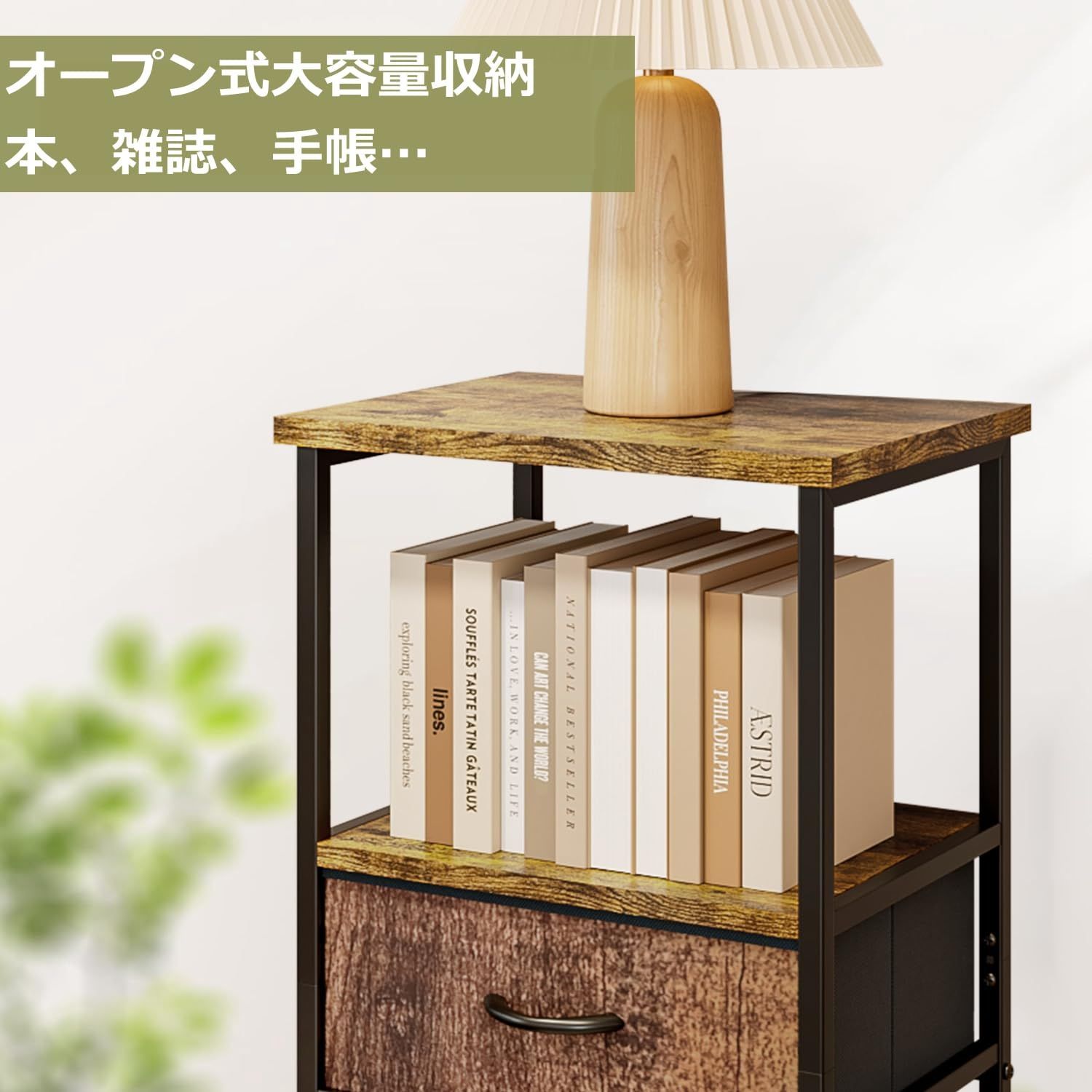 サイドテーブル 引き出し付き ミニテーブル ベッドテーブル ナイトテーブル コーヒーテーブル 木目調 棚付き おしゃれ 収納棚 幅38×奥行28×高さ75cm (ブラウン)