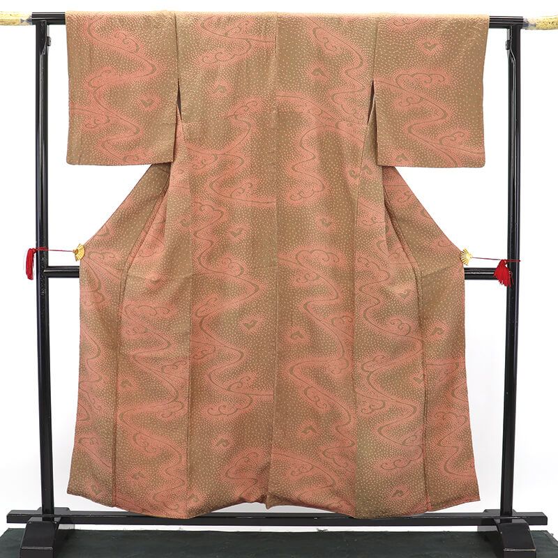 袷着物:着用時期10~5月収納のシワがあります。右後身頃裾付近に茶色い薄い線汚れがあります。衿裏や胴裏の脇線などに、薄茶色のしみが出ております。 保管によるものだと思います。 表地の汚れも、よく汚れを探さなければわかりづらい状態です。 裏地を気にせず、ご利用いただける方におすすめです。 中古のお着物をご検討のお客様へ中古品をより気持ちよく着る簡易お洗濯『軽洗い』もおすすめです。(返品・キャンセル不可)オプションにてご選択くださいませ。納期に2~3週間頂きます。軽洗いをご選択の場合、ゆとりのある着用日程にてご検討くださいませ。【発送について】大切なお品物を、ぬれ防止のためビニールにお包みし、発送いたします。ご入金確認後、1~3営業日以内に発送手続きをさせていただきます。【ご留意事項】中古品のため、すべて一点限りのご用意となります。気になる点がございましたら、ご購入前にお気軽にお問い合わせくださいませ。