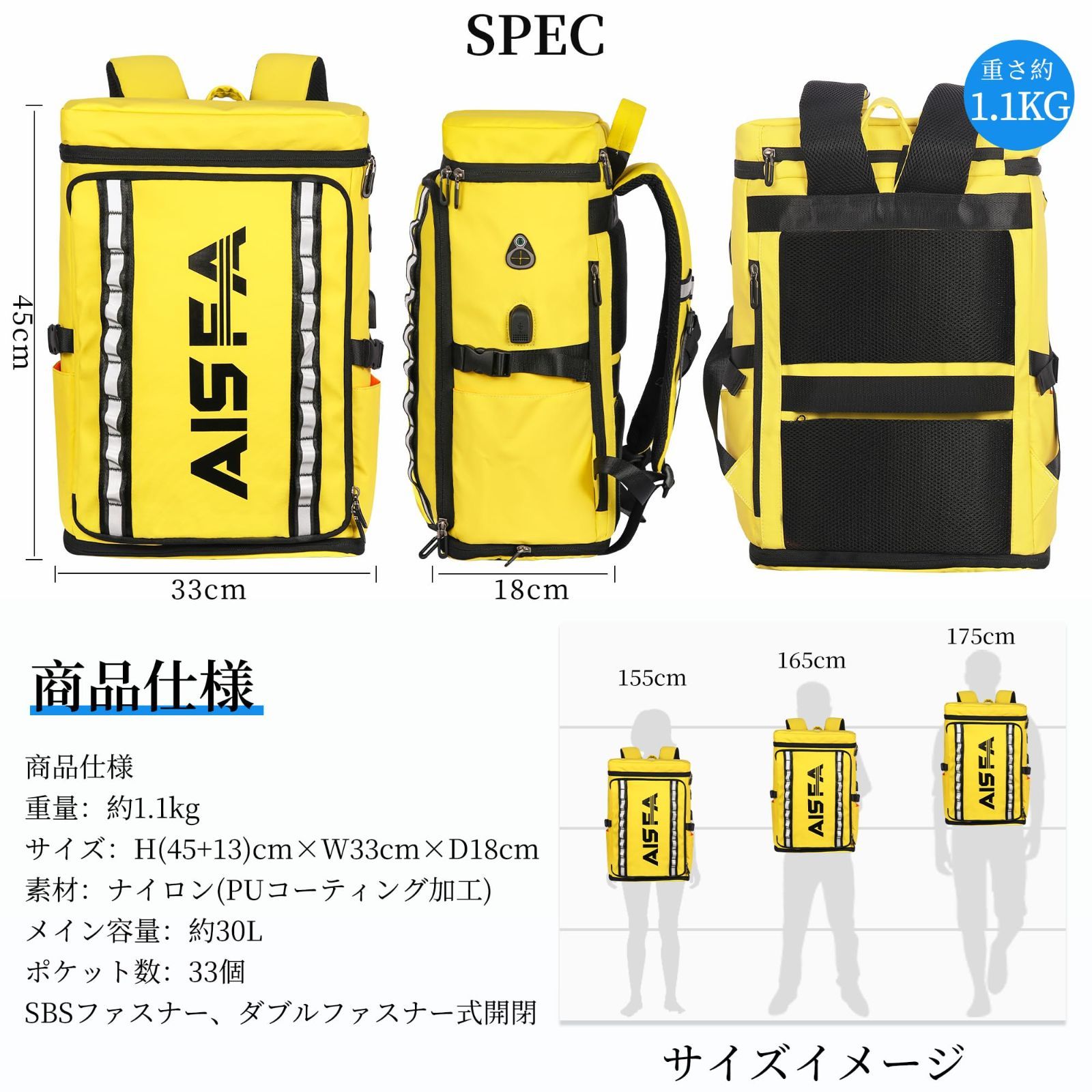 【大容量リュックサック】サイズ:拡張前サイズ:45cm*33cm*18cm , 拡張後サイズ:58cm*33cm*18cm , 重さ:1.1KG 容量:拡張前30L 拡張後約35L 人気のBox構造、スクエア型で、収納力抜群、どんなシーンでも大活躍するリュックサックです。17インチPC、A4サイズの書類や2~3日分の着替えなど必要なアイテムたっぷりと入る可能で、スマートな仕分けポケット付き大容量バックパックです。