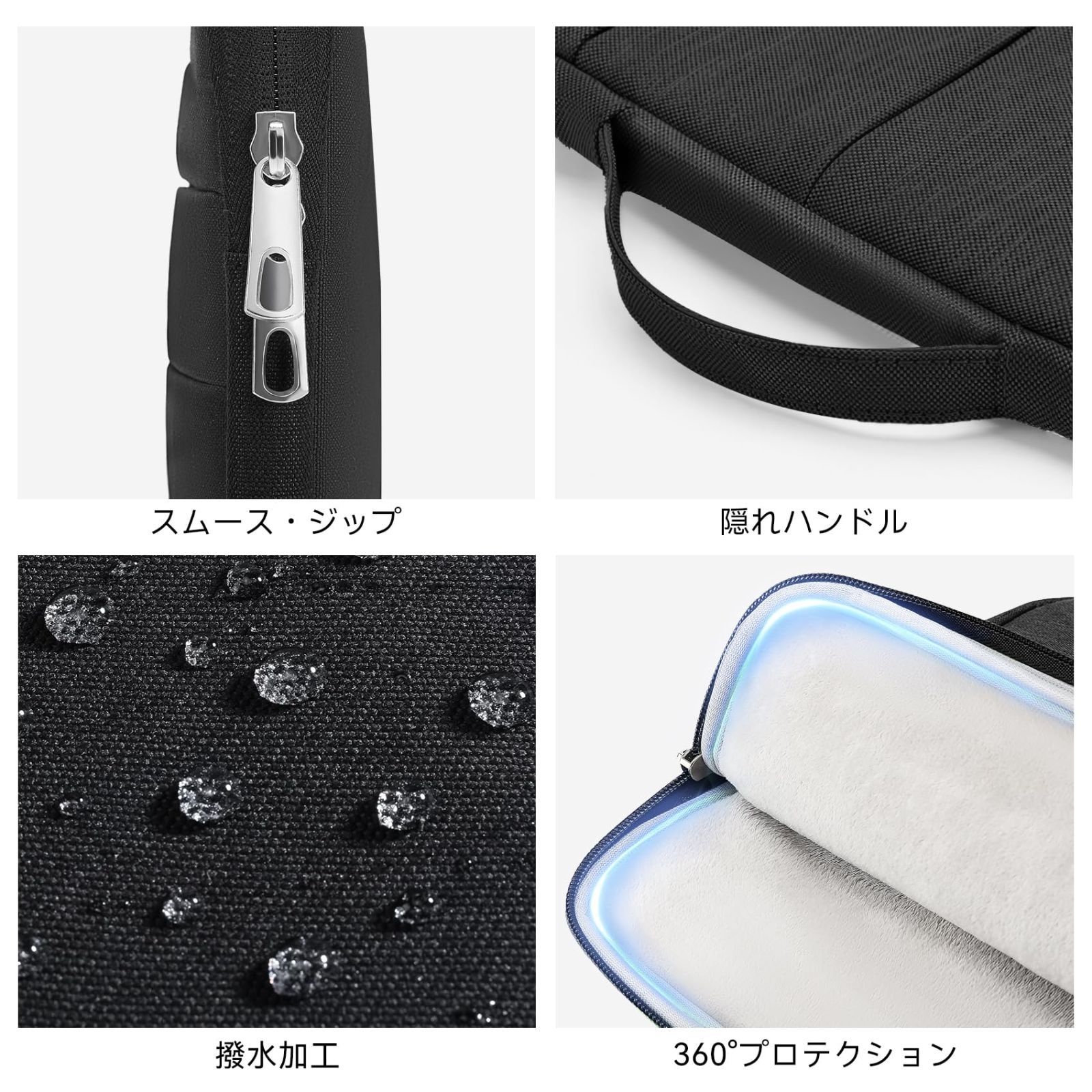【360° 全面保護】180°完全に開けられるメインポケットの中に、面ファスナー製ベルトがノートPCを固定でき、落下などの恐れがありません。外部からの衝撃を吸収する厚みを保ちながら、体積を少なくして軽量化を実現しています。パソコンケース表面は撥水性に優れ、耐久性と高級感のあるオックスフォード布を採用しております。